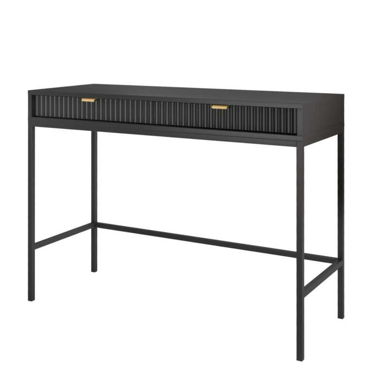 Toaletka NANAIMO – Czarna – Złote Uchwyty – Dwie Szuflady – Szerokość 104 cm, Wysokość 77 cm, Głębokość 50 cm