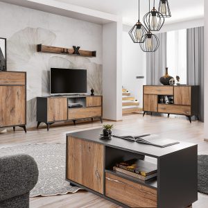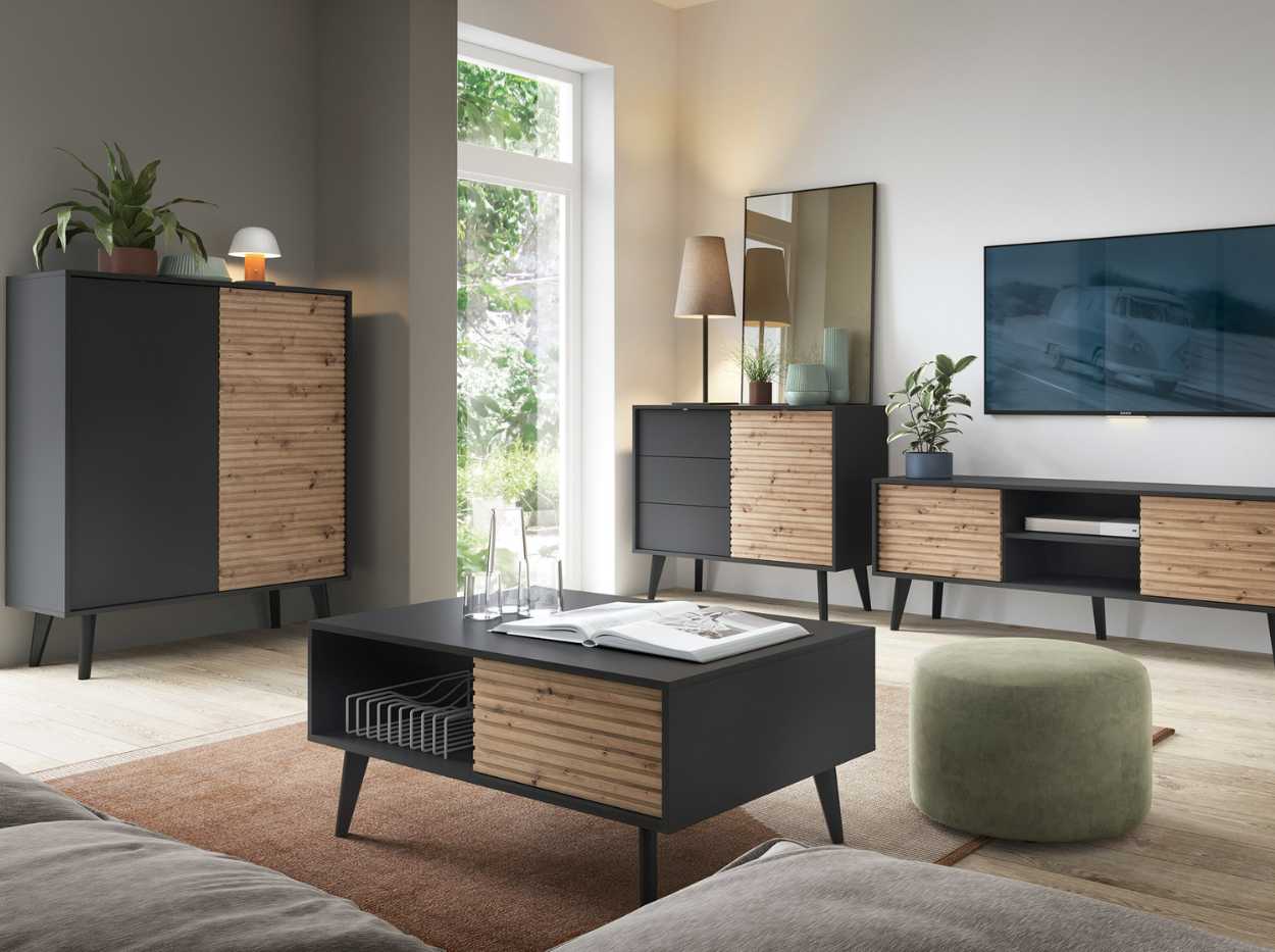 Zestaw Mebli RTV Tivoli Medio, Czarny/Czarny