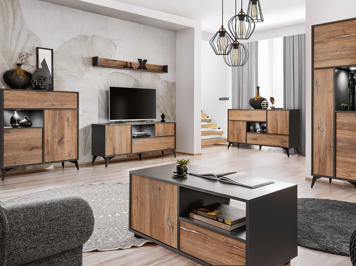 Zestaw Mebli RTV Tivoli Grande, Wotan/Wotan Oświetlenie LED RGB