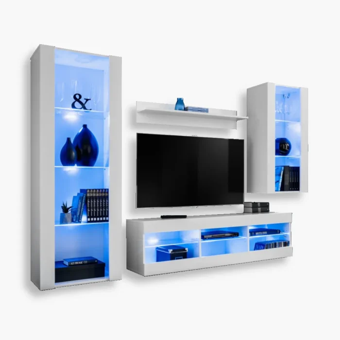 Zestaw Mebli RTV Tivoli Medio, Biały/Biały Oświetlenie LED Niebieskie