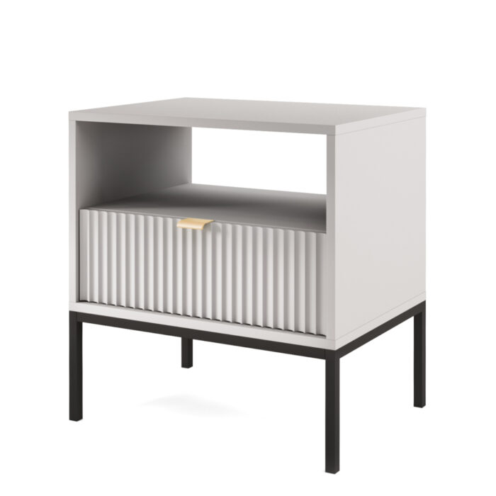 Stolik kawowy NANAIMO – Kaszmirowy – Złote Uchwyty – Z Szufladą – Szerokość 104 cm, Wysokość 48 cm, Głębokość 68 cm