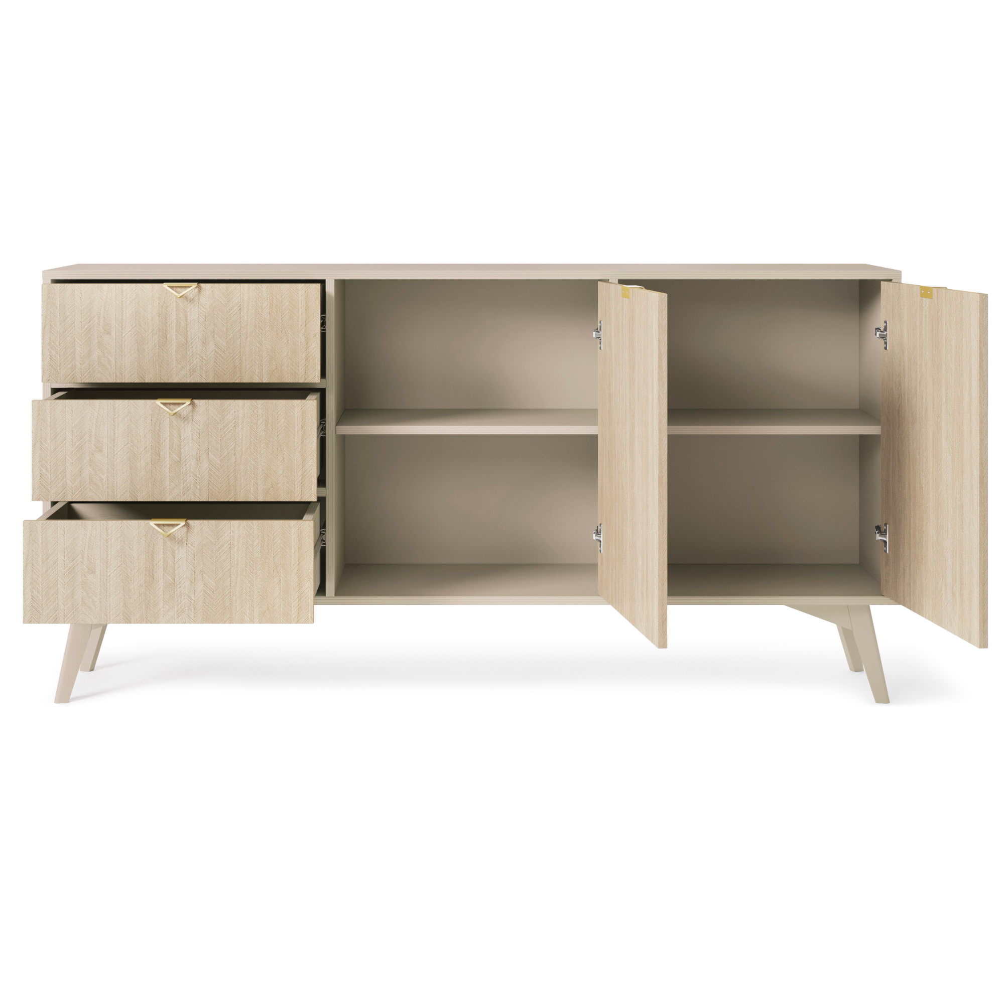Komoda TOFINO – dąb – beżowy – metalowe uchwyty – 3 szuflady – szerokość 158 cm, wysokość 80 cm, głębokość 38 cm