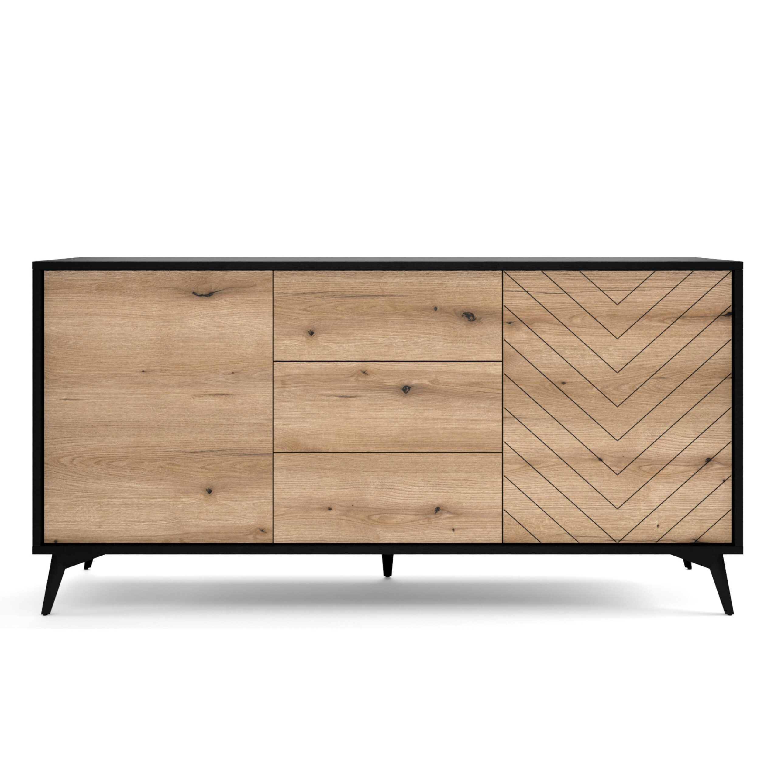 Jasper KSZ154 – komoda, dąb evoke,czarny, szerokość 154 cm, wysokość 77 cm, głębokość 39 cm