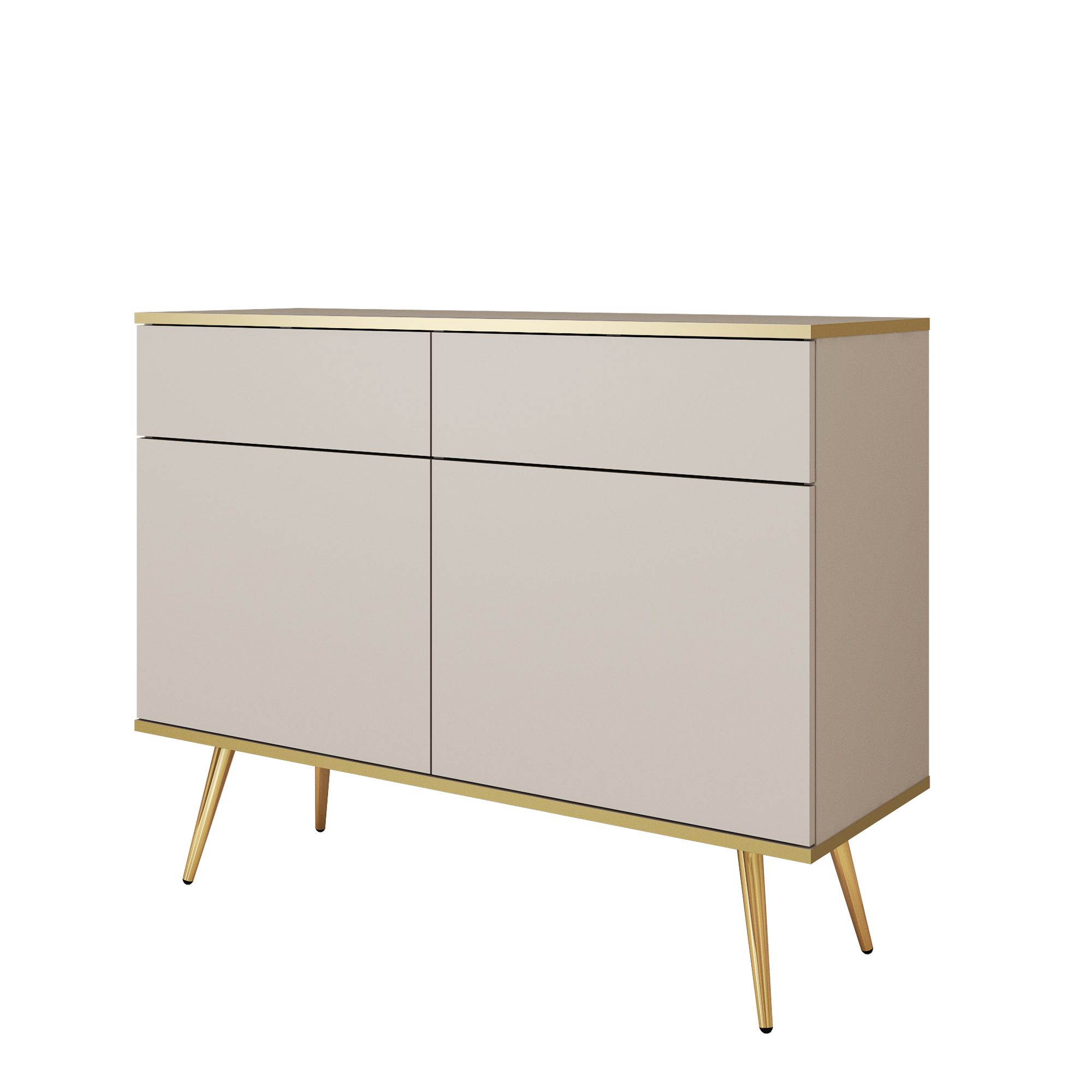 Komoda Banff KSZ107 – beżowa – złote nogi – 2 szuflady – szerokość 107 cm, wysokość 85 cm, głębokość 39 cm