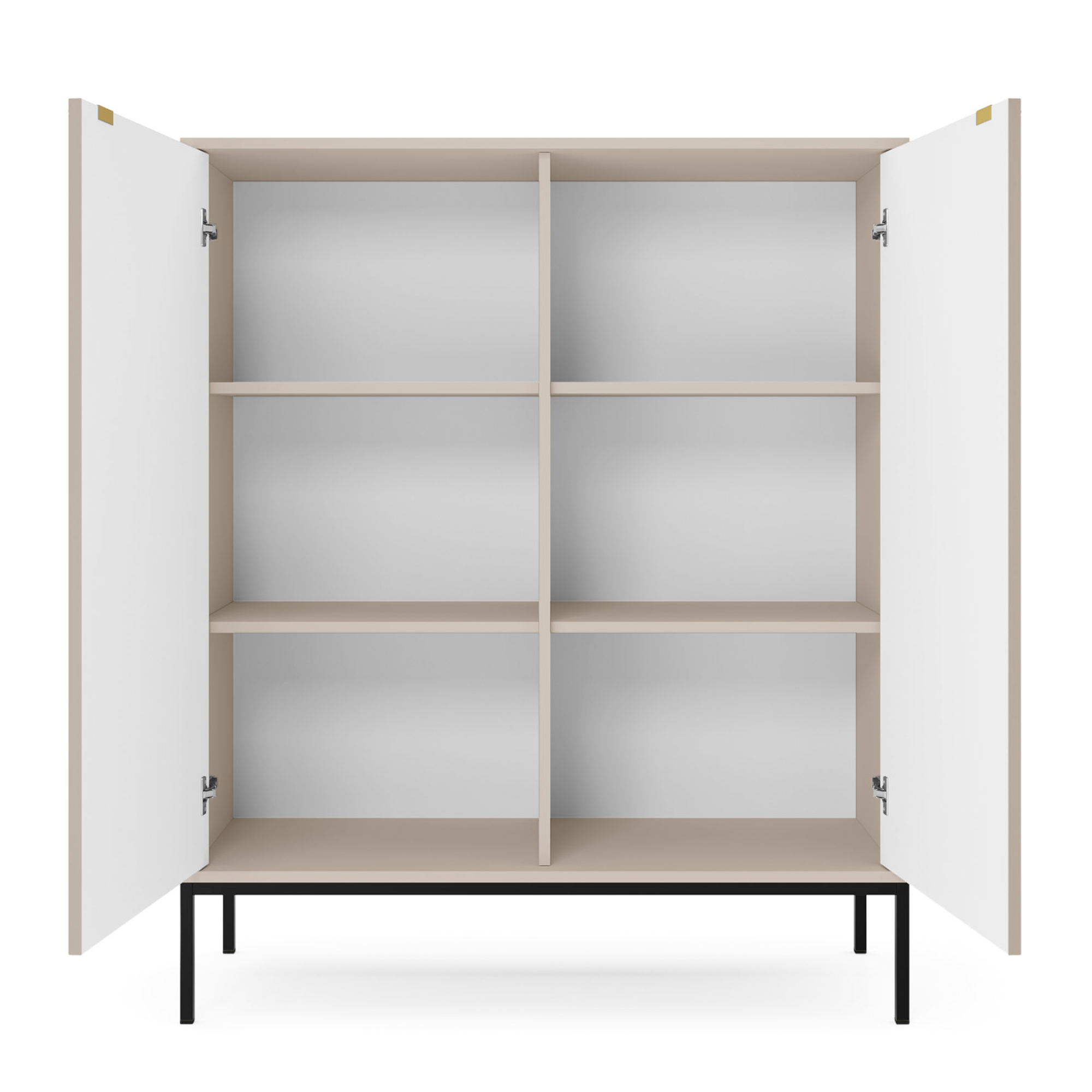 Wysoka, dwudrzwiowa komoda NANAIMO kryje za eleganckimi frontami aż sześć pojemnych półek, dzięki którym łatwo uporządkujesz ubrania, tekstylia, akcesoria czy zabawki. Takie rozwiązanie pozwala zachować porządek w salonie, sypialni, pokoju dziecięcym czy przedpokoju.