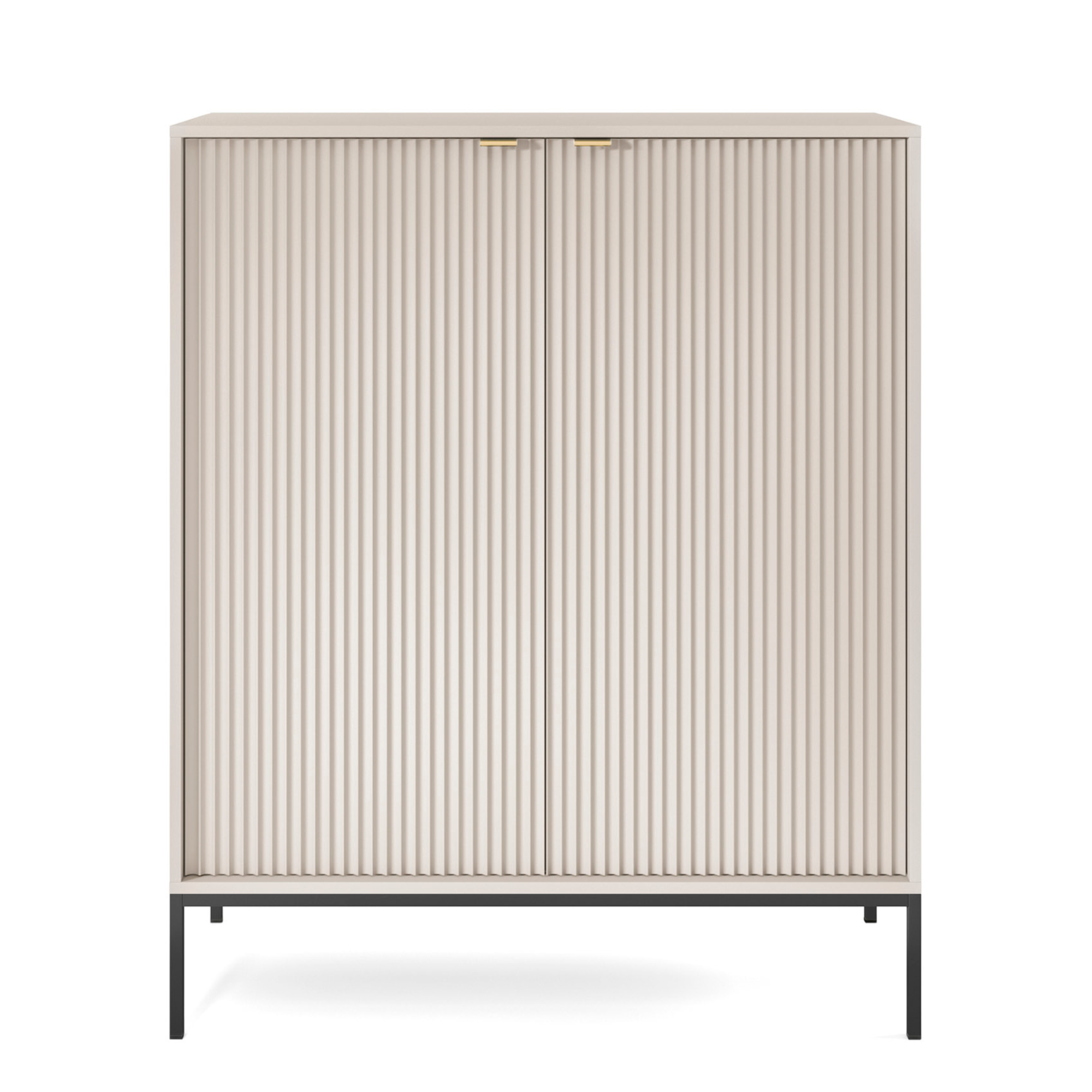 Charakterystyczne ryflowane fronty oraz geometryczna stalowa podstawa nadają meblowi wyjątkowego charakteru, wpisując go w najnowsze trendy wnętrzarskie. Komoda dostępna jest w aż 5 kolorach: kaszmirowym, białym, zielonym, czarnym i szarym, dzięki czemu łatwo dopasujesz ją do swojego wnętrza.