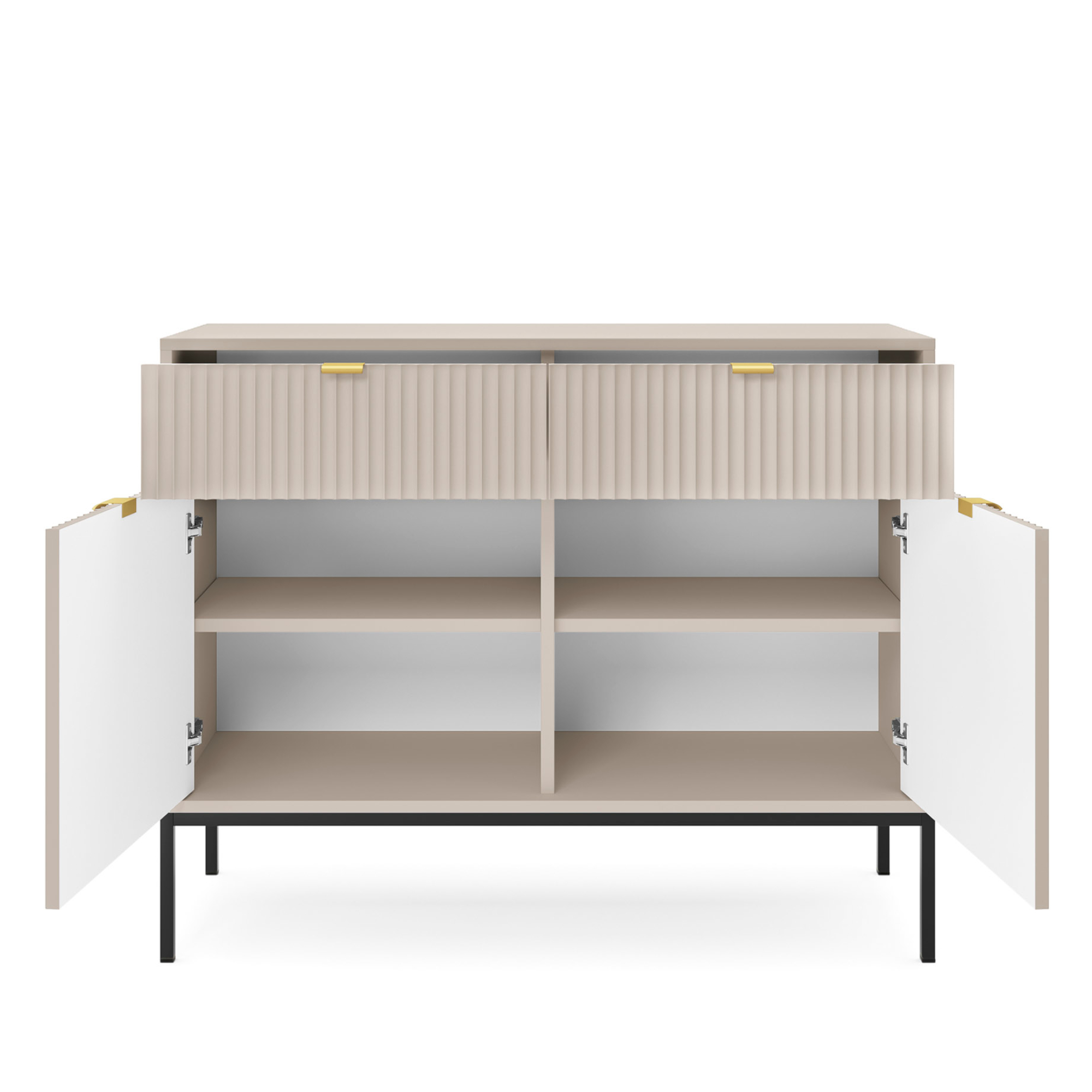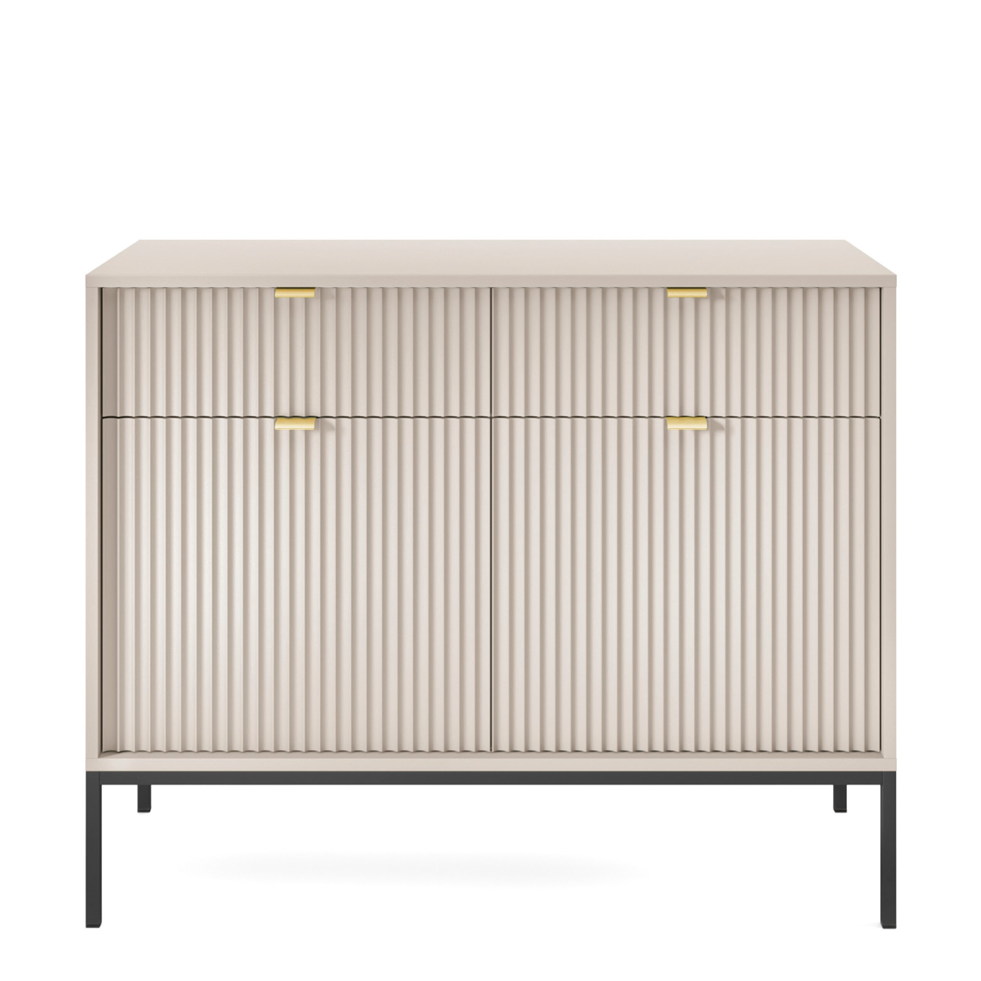 Komoda NANAIMO KSZ104 – kaszmir – złote uchwyty – 2 szuflady – szerokość 104 cm, wysokość 83 cm, głębokość 39 cm