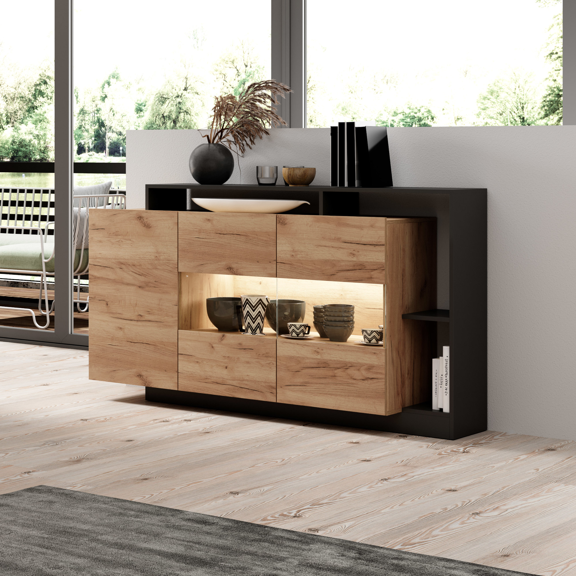 W Tivoli znajdziesz miejsce na swoje ulubione książki, pamiątki lub filiżanki. Razem z dyskretnym oświetleniem LED (opcja) stworzy Twoim wnętrzu
