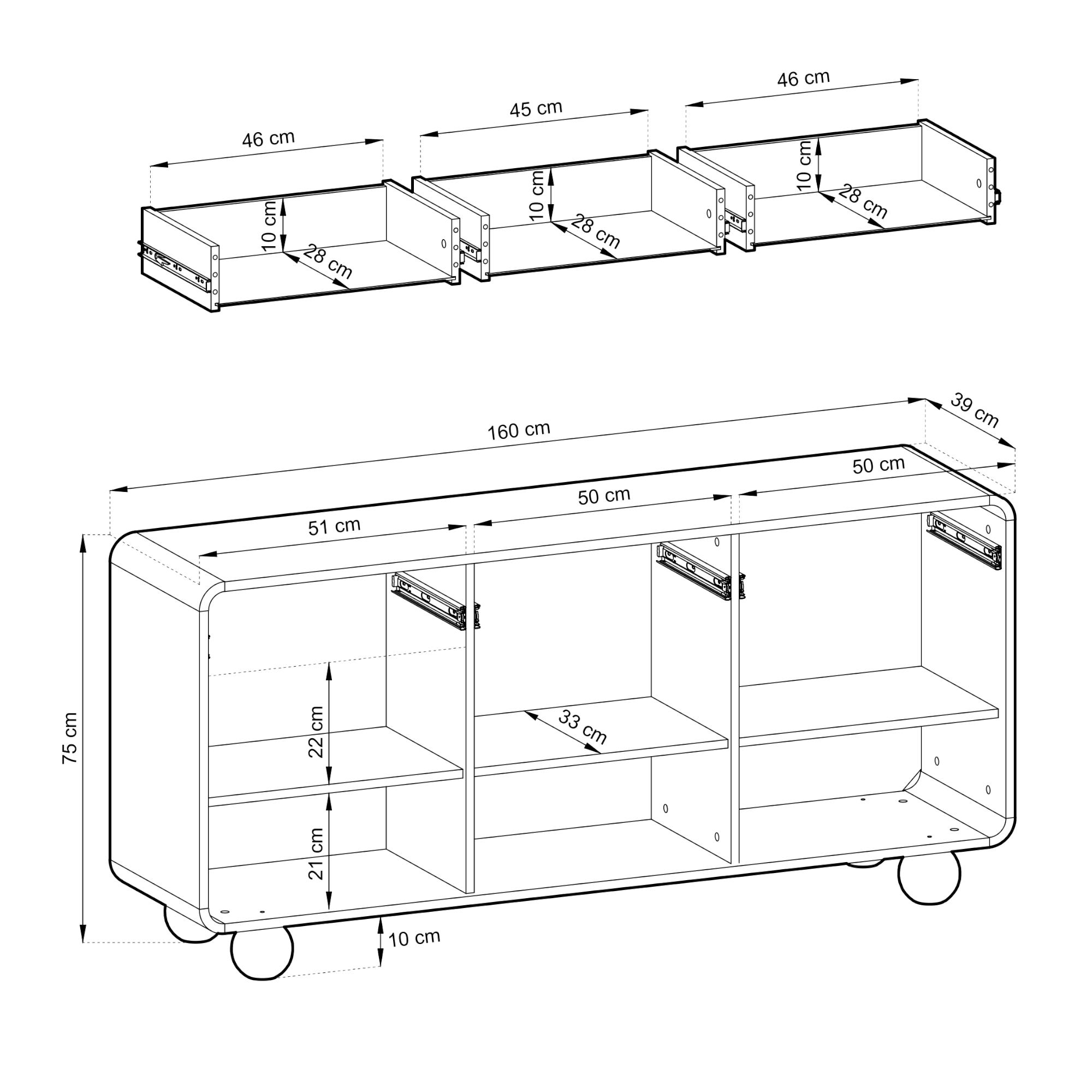 Wymiary 39 × 160 × 75 cm