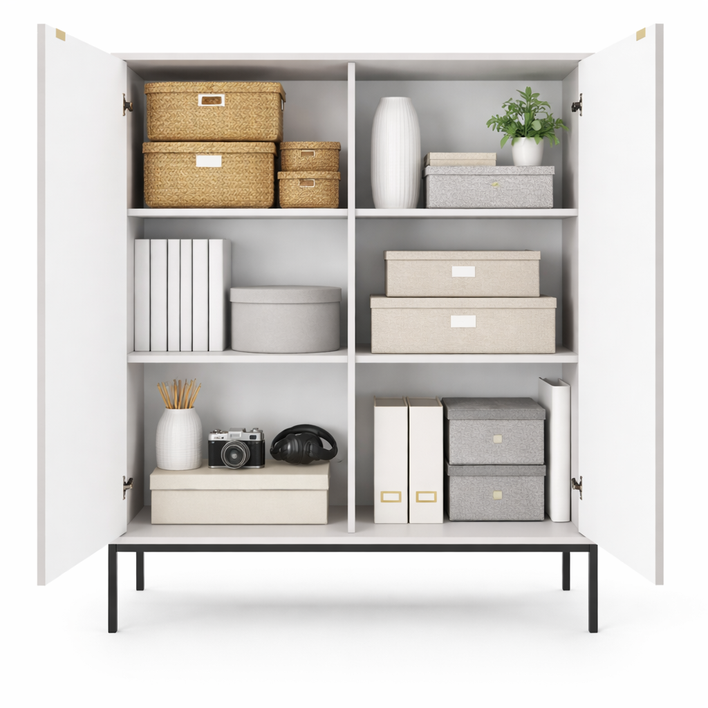 Wysoka, dwudrzwiowa komoda NANAIMO kryje za eleganckimi frontami aż sześć pojemnych półek, dzięki którym łatwo uporządkujesz ubrania, tekstylia, akcesoria czy zabawki. Takie rozwiązanie pozwala zachować porządek w salonie, sypialni, pokoju dziecięcym czy przedpokoju.