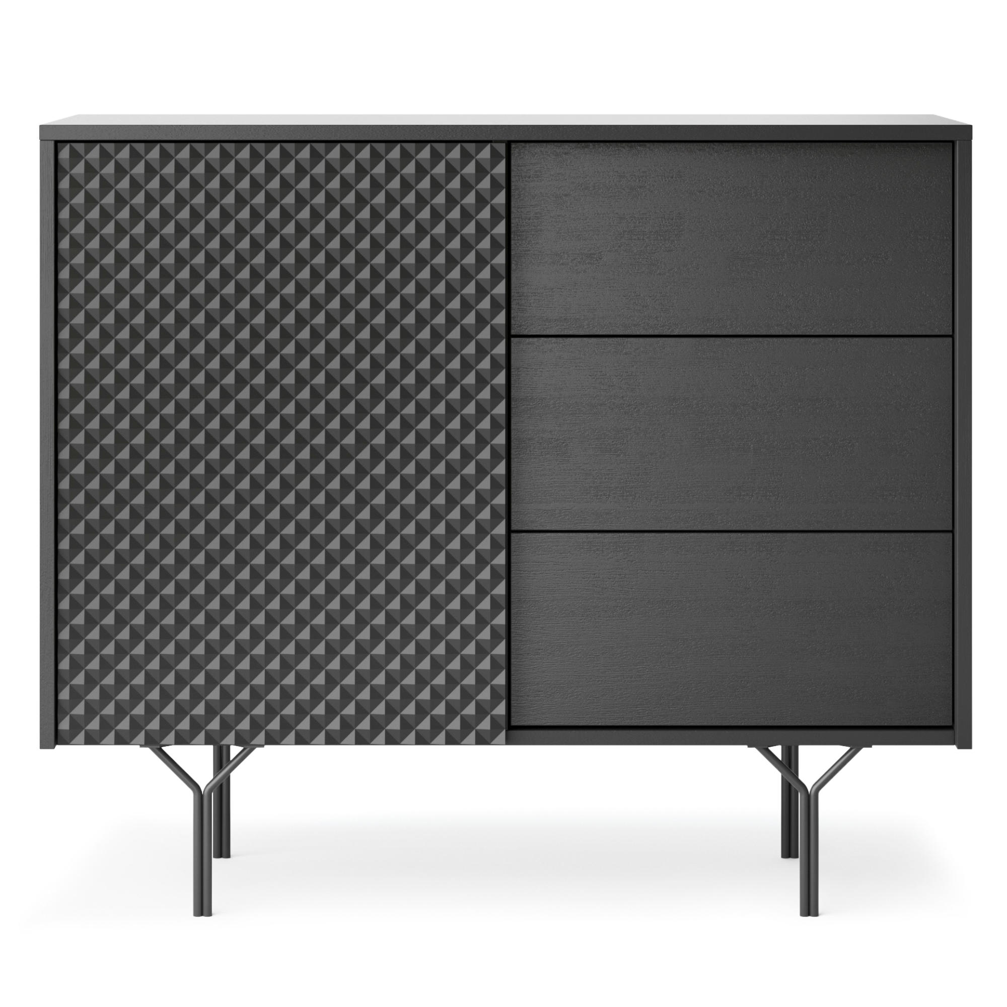 Komoda ORILLIA KSZ144 – czarna – frezowany front – 3 szuflady – szerokość 97 cm, wysokość 83 cm, głębokość 38 cm