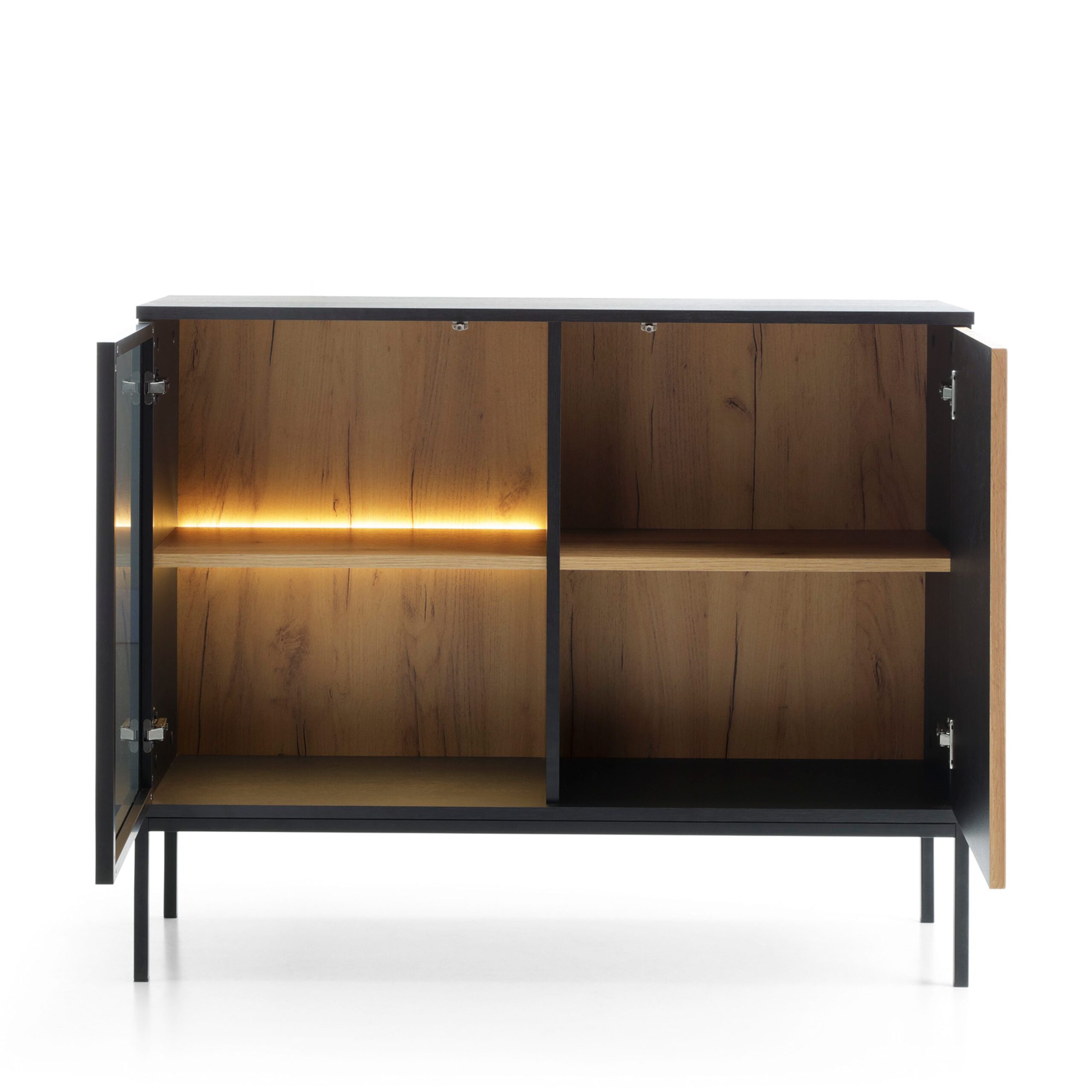 Laval K104 LED – komoda trzydrzwiowa z oświetleniem, czarny, dąb wotan, szerokość 104 cm, wysokość 83 cm, głębokość 39 cm