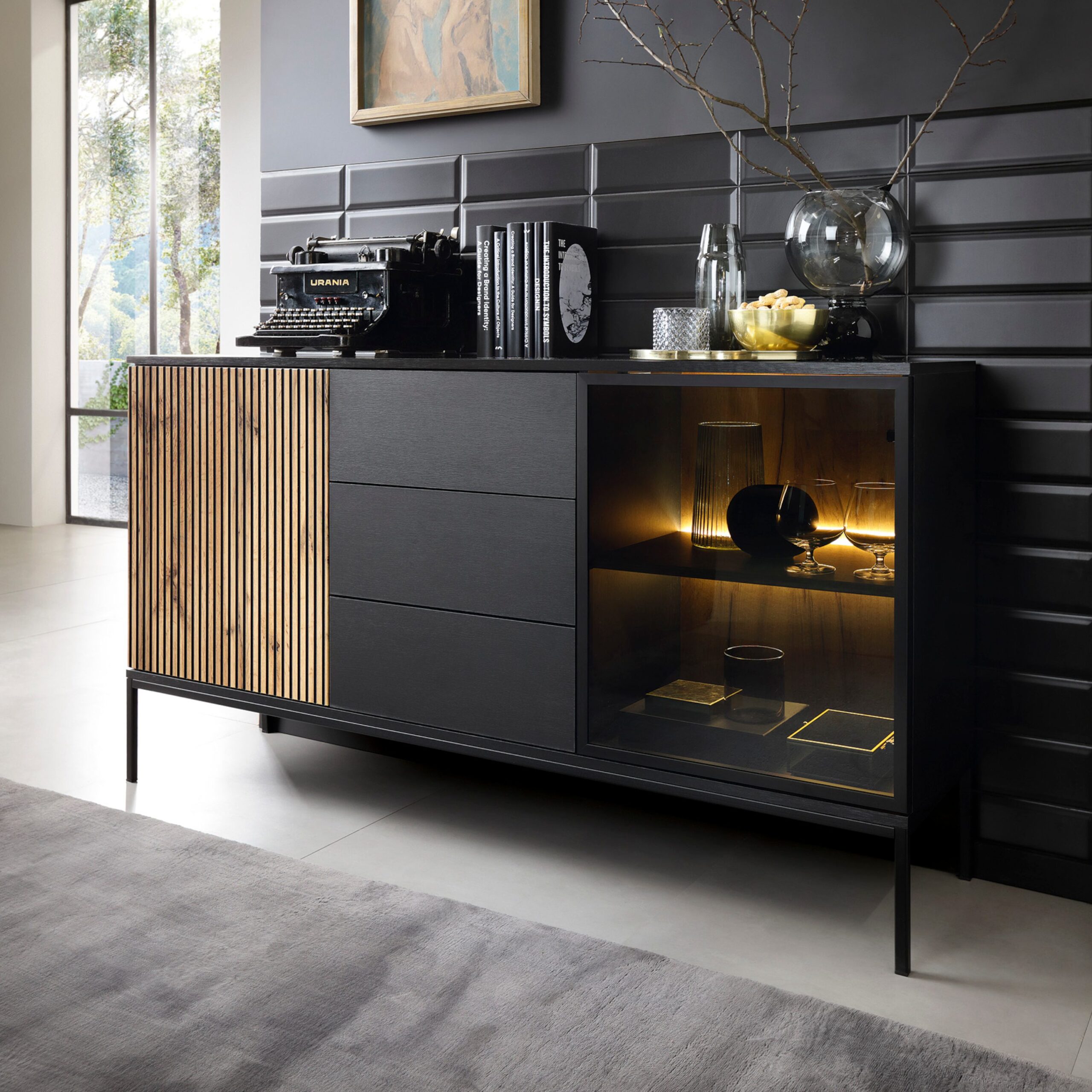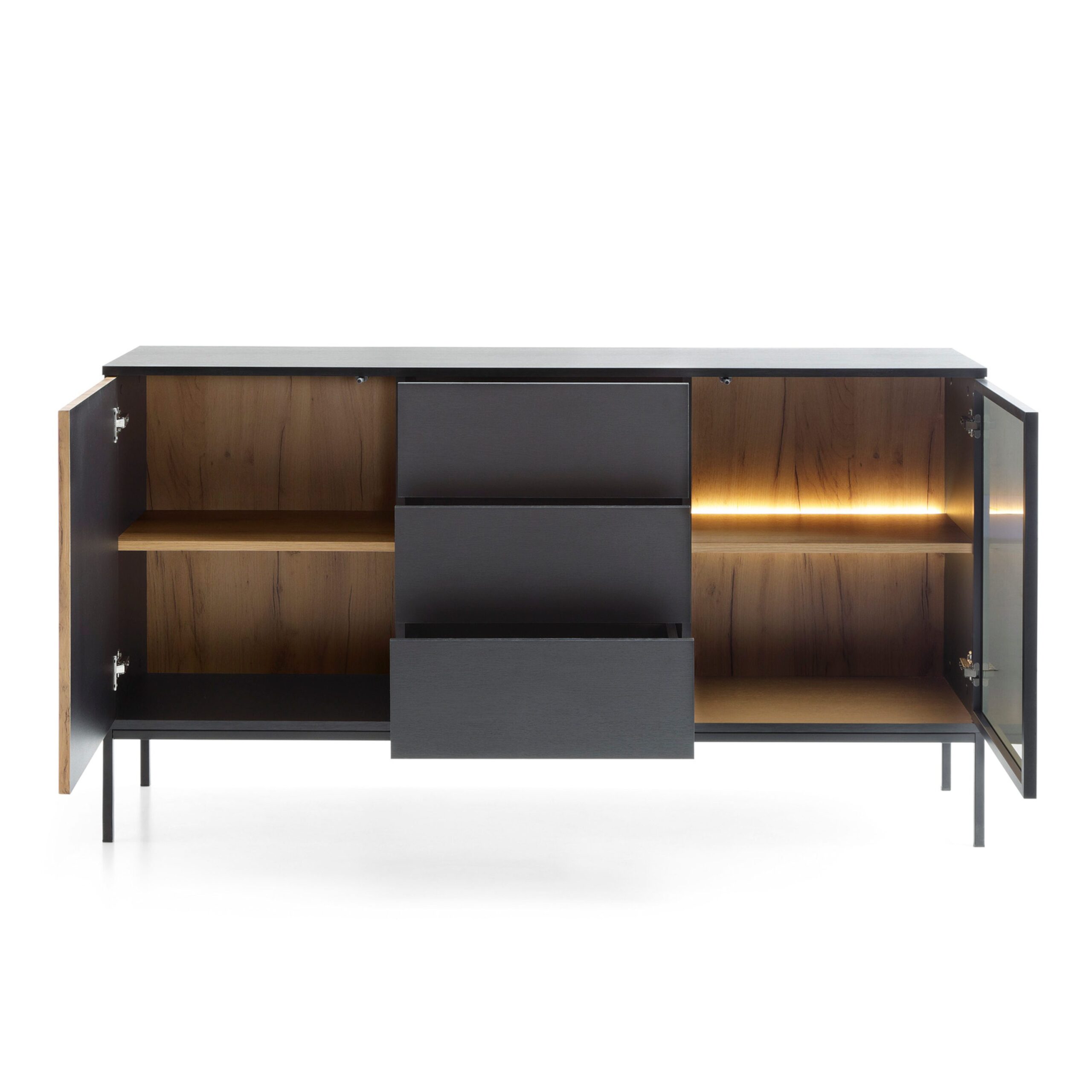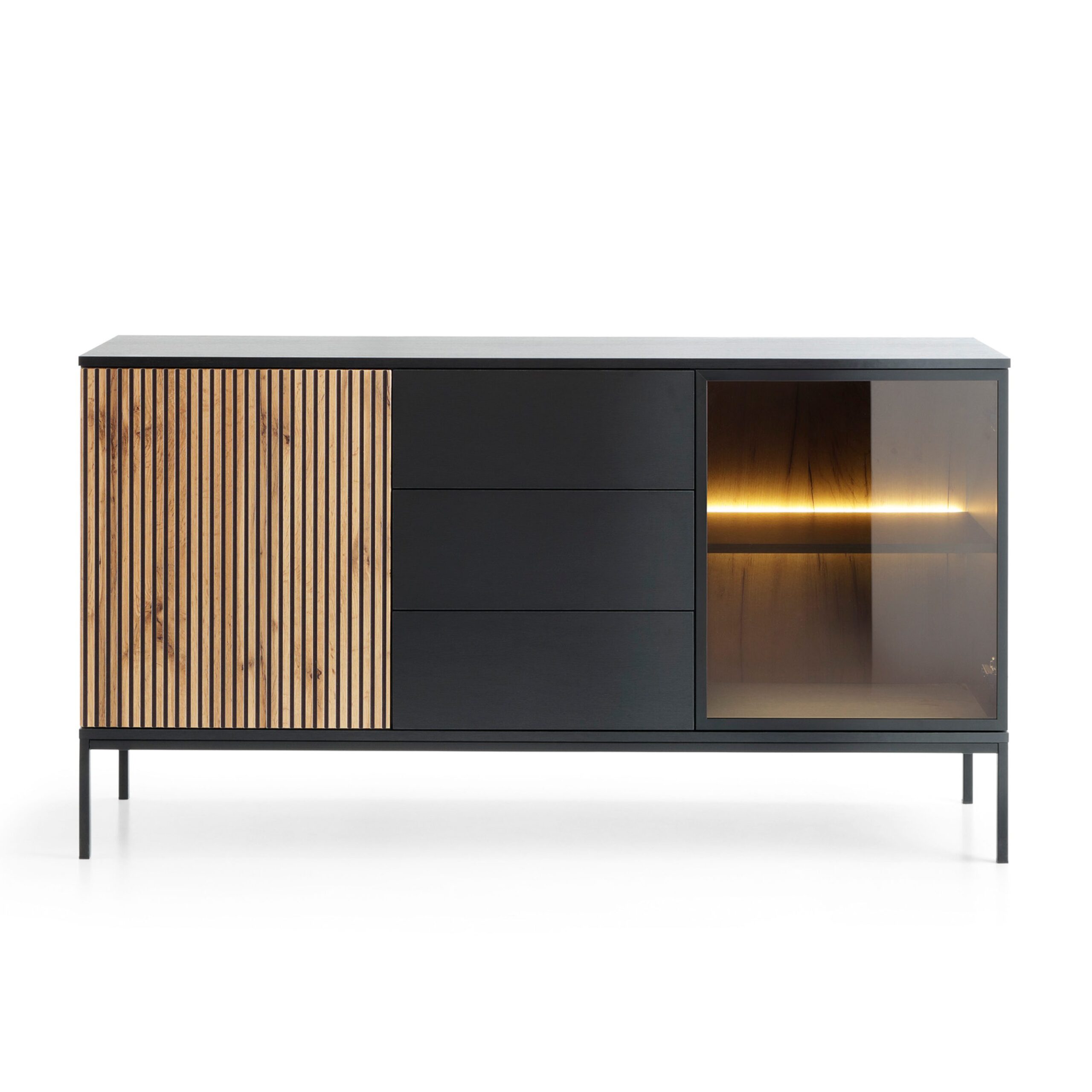 Laval KSZ154 – komoda, dąb wotan, czarny z lamelami, szerokość 154 cm, wysokość 83 cm, głębokość 39 cm