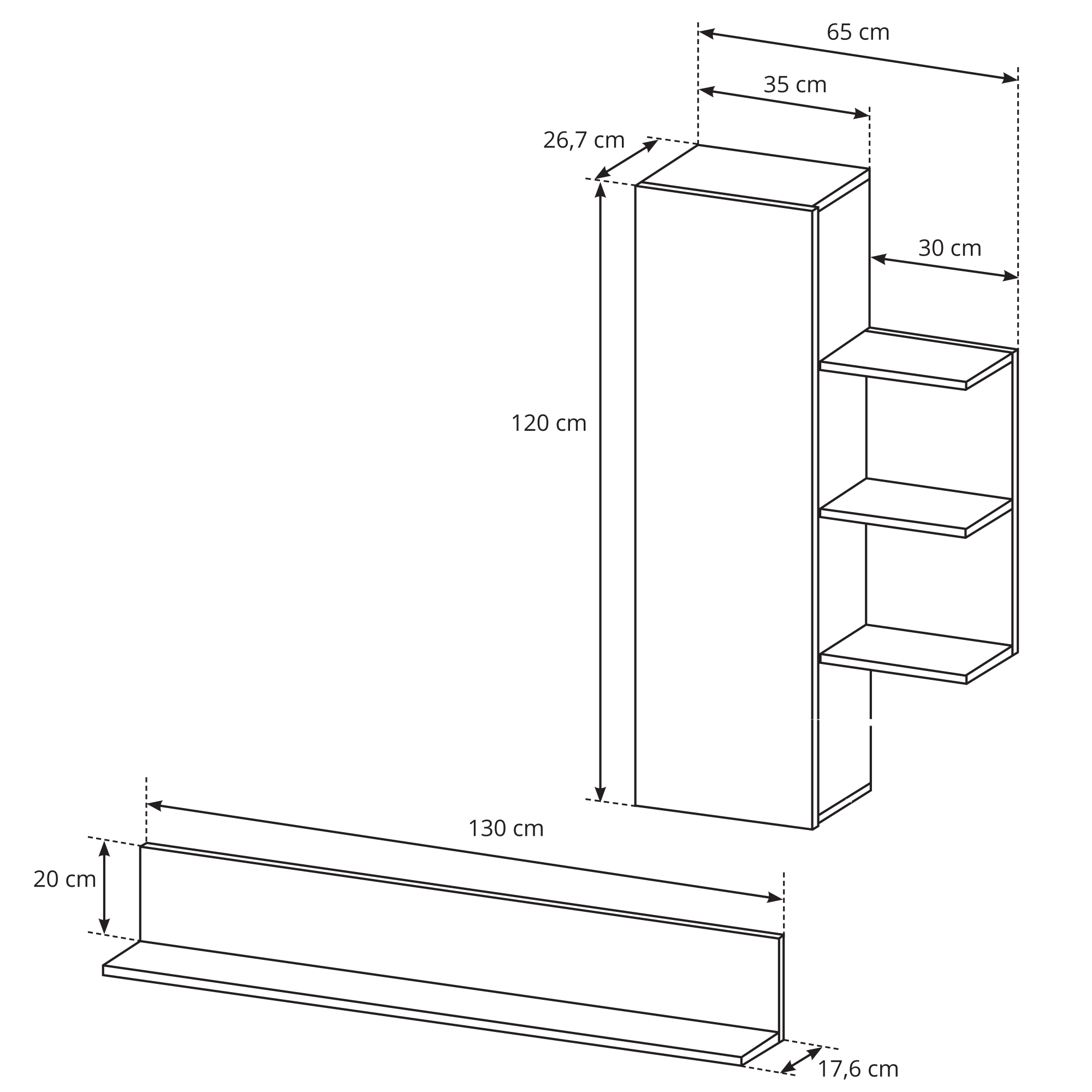 Meble z kolekcji ALVDAL zostały zaprojektowane z myślą o maksymalnej funkcjonalności – oferują dużą ilość miejsca do przechowywania, umożliwiając wygodne uporządkowanie sprzętu RTV, dokumentów, dekoracji oraz codziennych akcesoriów. Modułowa konstrukcja pozwala na elastyczne dopasowanie układu do indywidualnych potrzeb oraz metrażu wnętrza, a możliwość montażu w wersji lewej lub prawej daje pełną swobodę aranżacyjną.