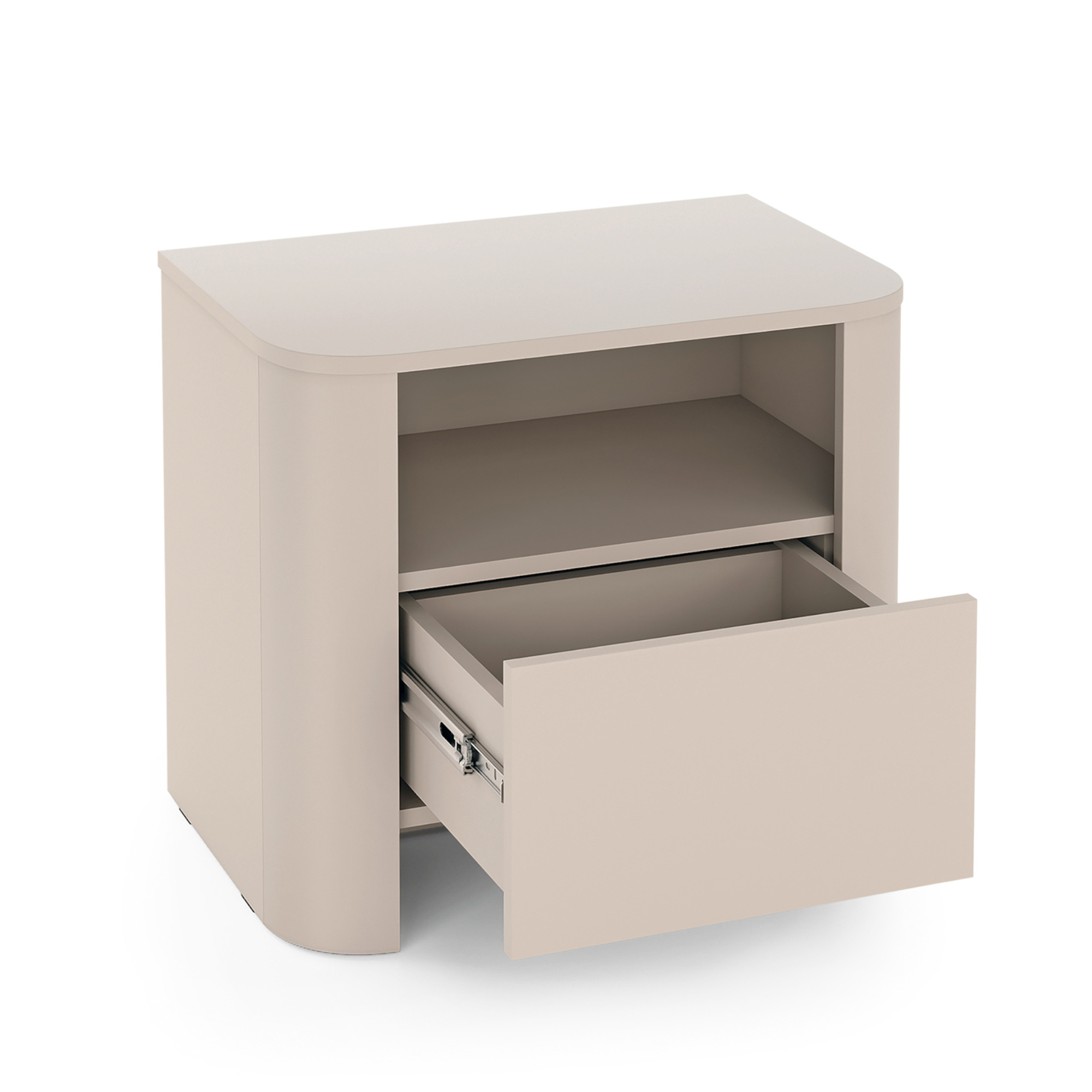 Nocna Szafka AMOS – Kaszmir – Zaokrąglona – Cichy Domyk – Szuflada – Szerokość 58 cm, Wysokość 52 cm, Głębokość 39 cm