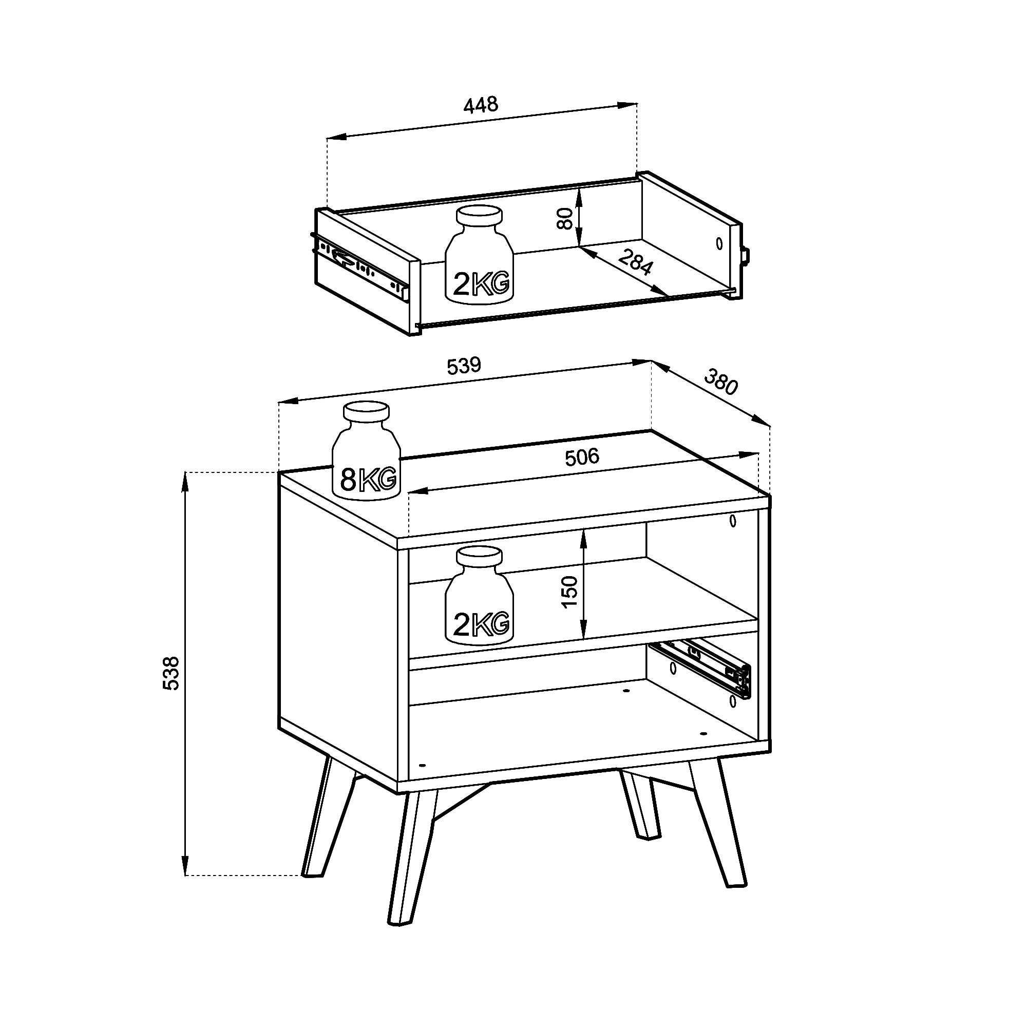 Szafka nocna została zaprojektowana tak, aby łączyć estetykę i praktyczność. Wyposażona w pojemną szufladę z pełnym wysuwem, pozwala wygodnie przechowywać drobiazgi, które chcesz mieć zawsze pod ręką – książki, okulary, biżuterię czy drobną elektronikę. Blat świetnie sprawdzi się jako miejsce na lampkę nocną, budzik lub szklankę wody.
