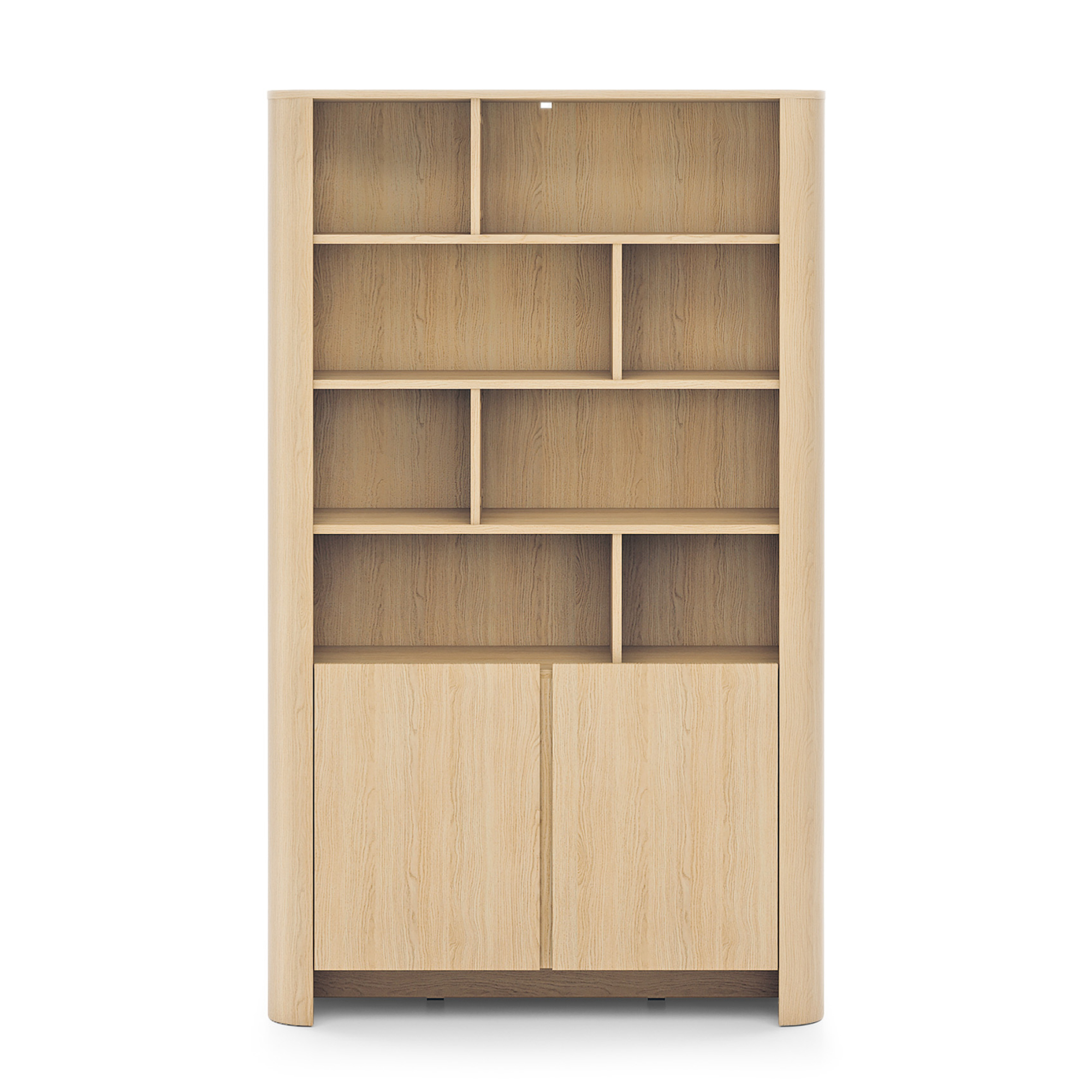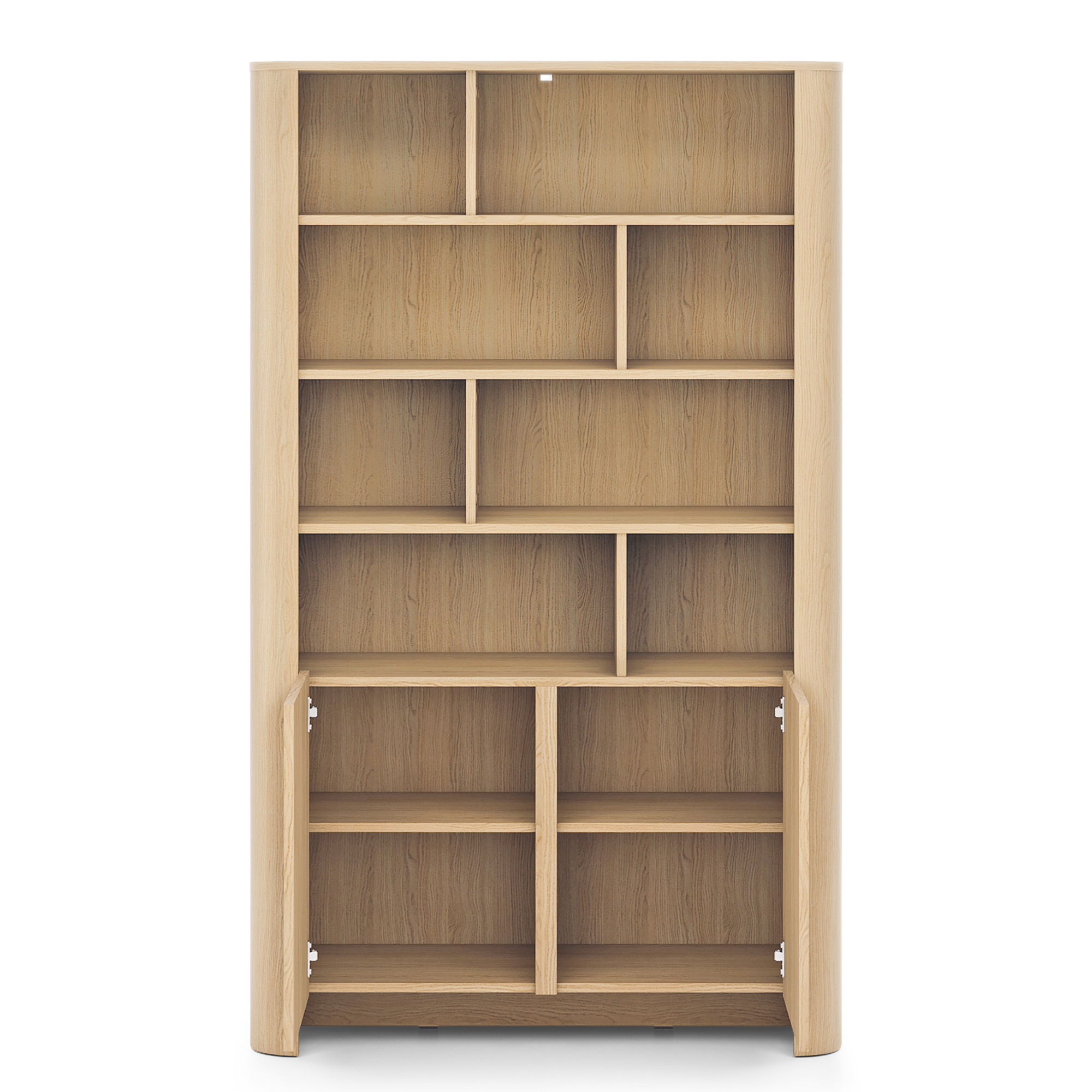 Regał Stojący Wysoki AMOS – Dąb – Zaokrąglony – Cichy Domyk – Szerokość 103 cm, Wysokość 170 cm, Głębokość 39 cm