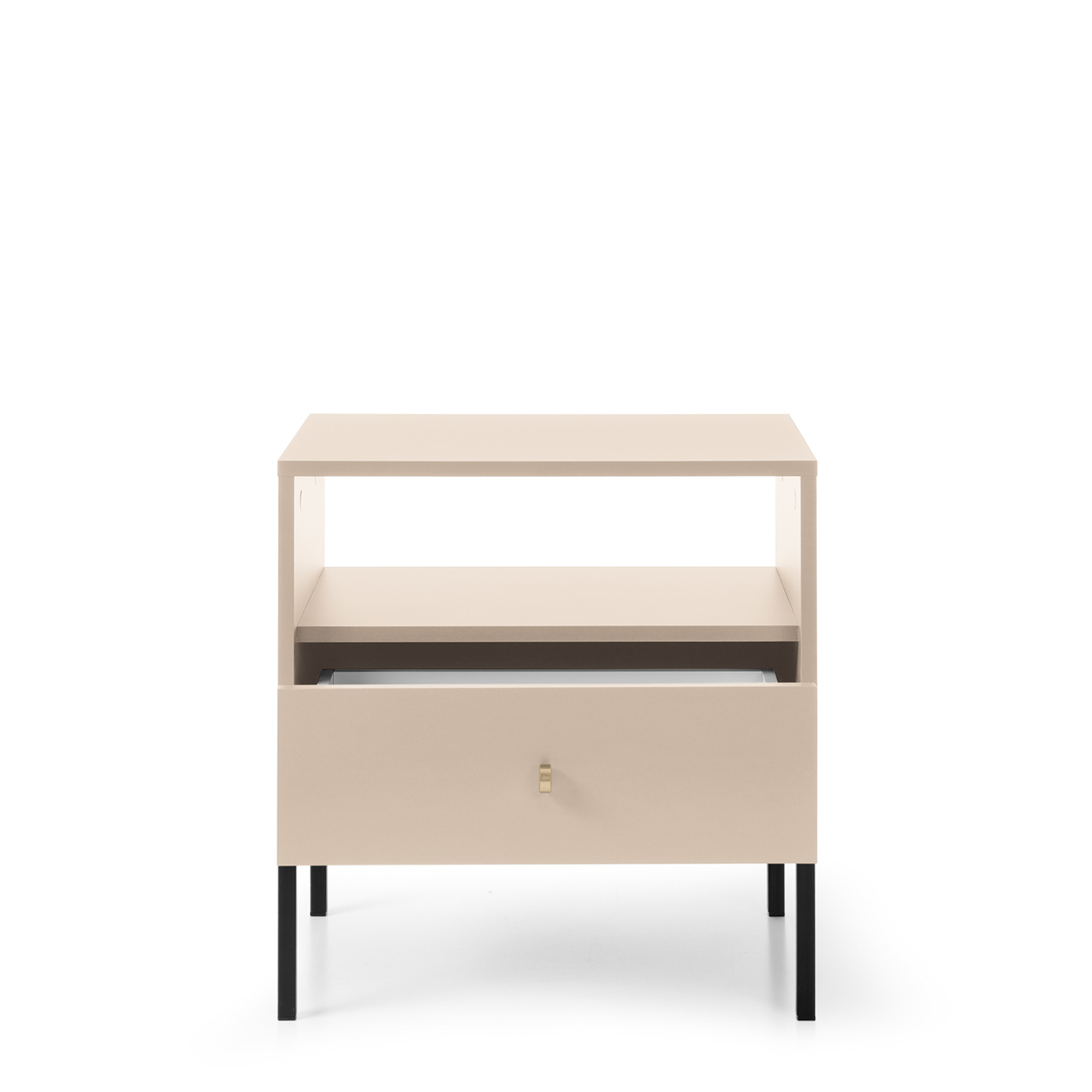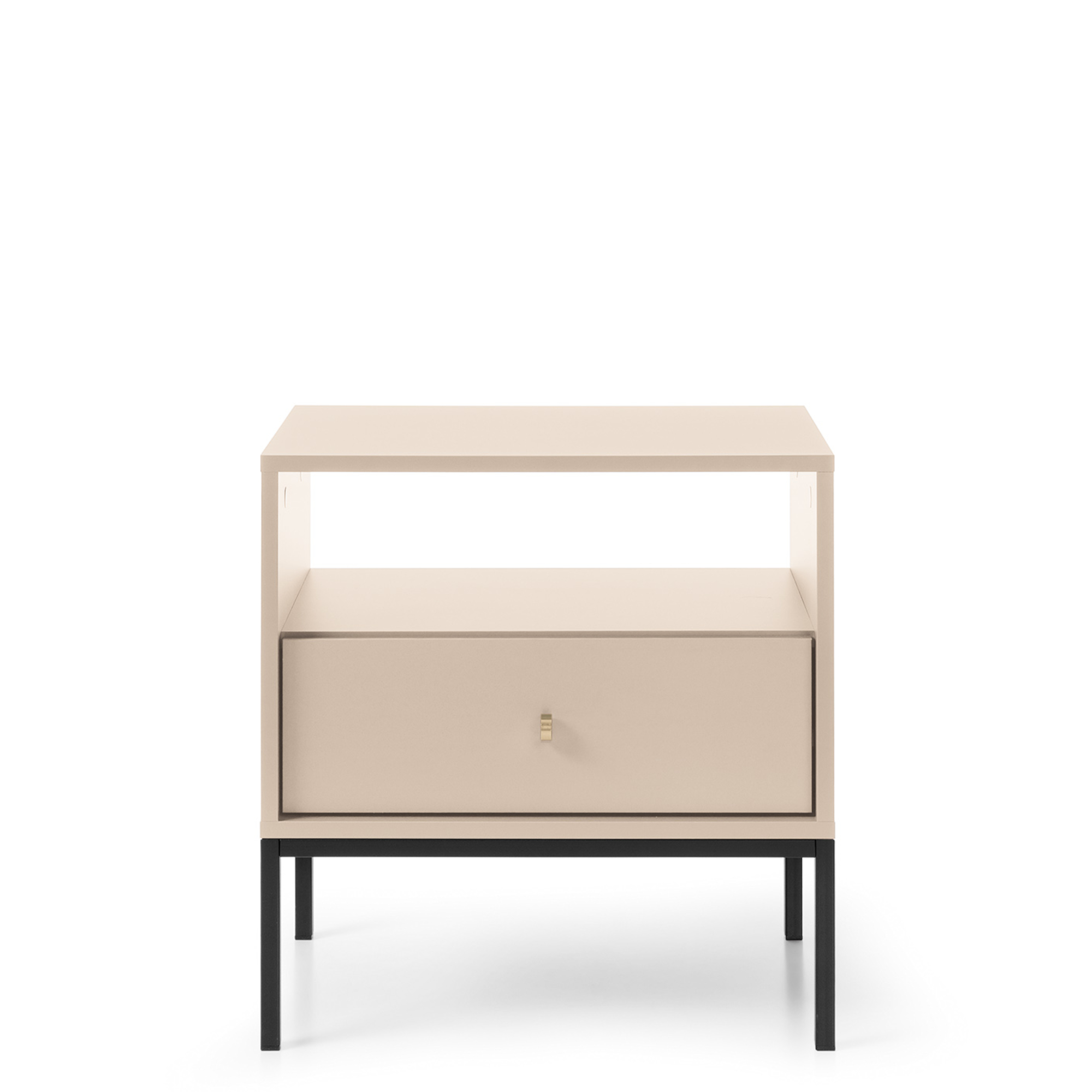 Stolik nocny MONCTON – Beige – Metalowe Uchwyty – Drawer – Szerokość 54 cm, Wysokość 56 cm, Głębokość 39 cm