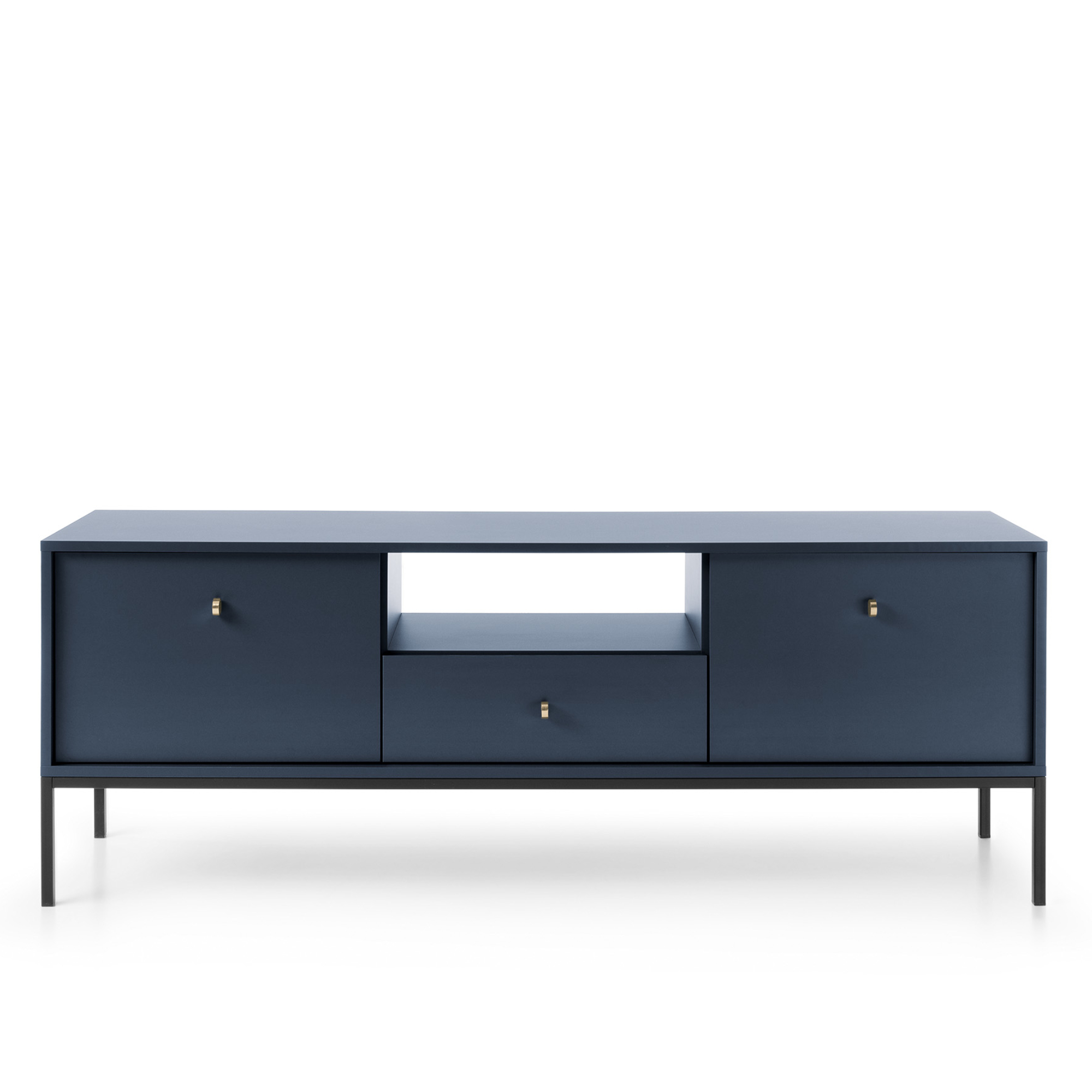 Szafka pod telewizor MONCTON – granatowy – Uchwyty metalowe – Szerokość 154 cm, Wysokość 56 cm, Głębokość 39 cm
