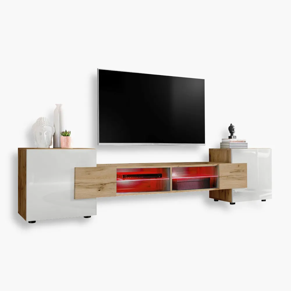Szafka RTV Merano, Wotan/Biały Oświetlenie LED RGB
