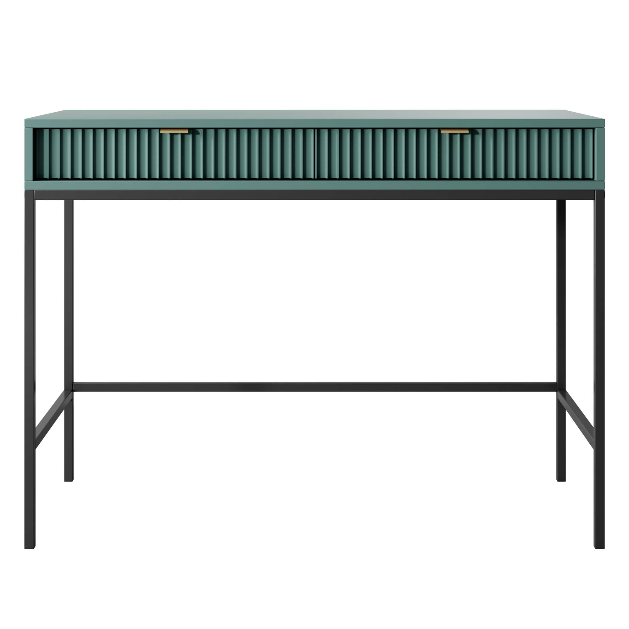 Toaletka NANAIMO – Zielona – Złote Uchwyty – Dwie Szuflady – Szerokość 104 cm, Wysokość 77 cm, Głębokość 50 cm
