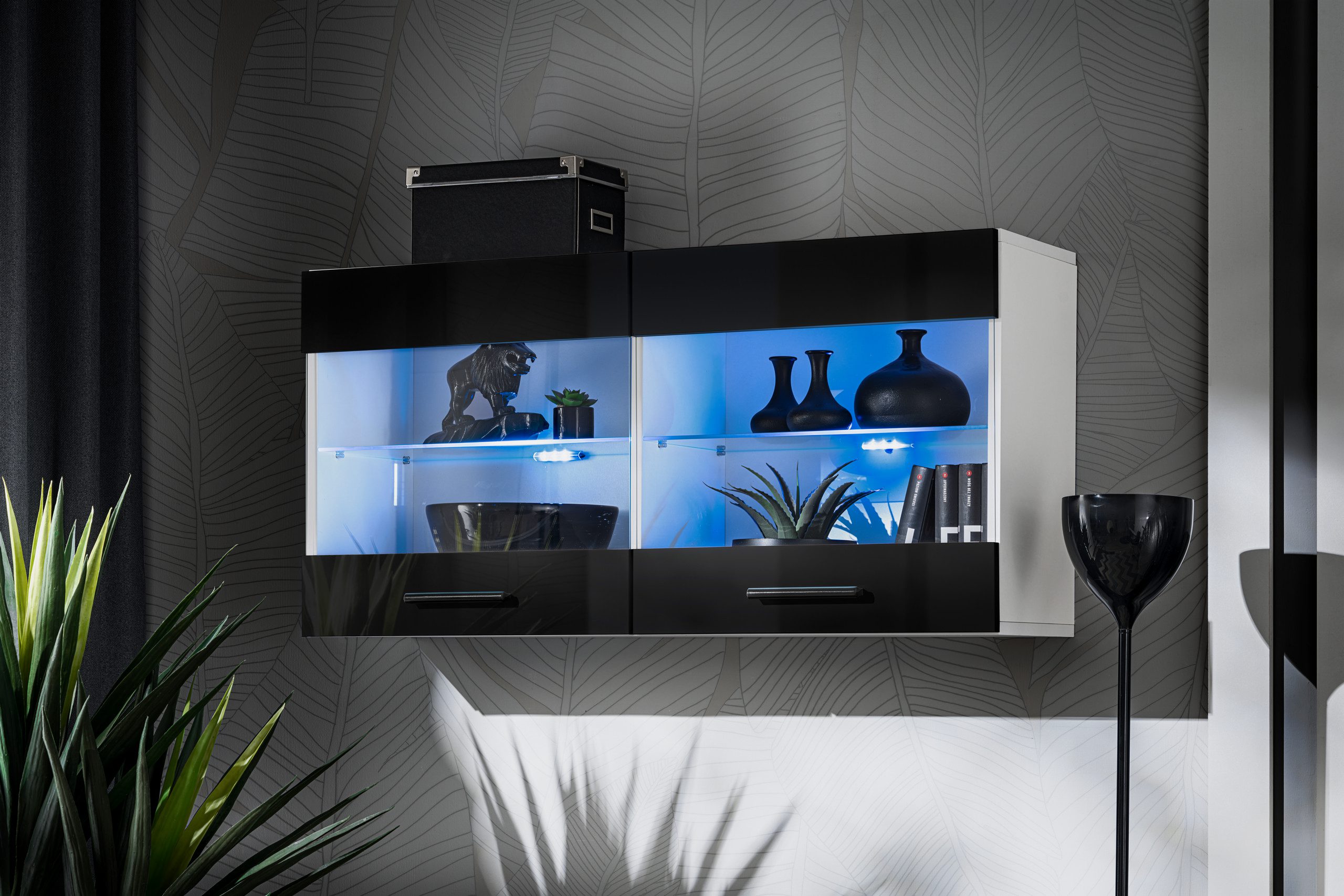 Witryna Półka Wisząca Savona, Czarny/Biały