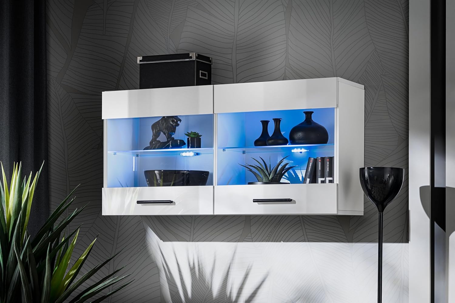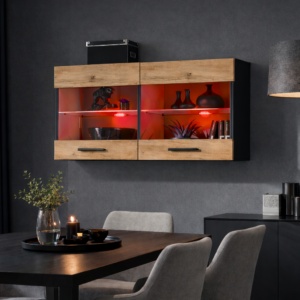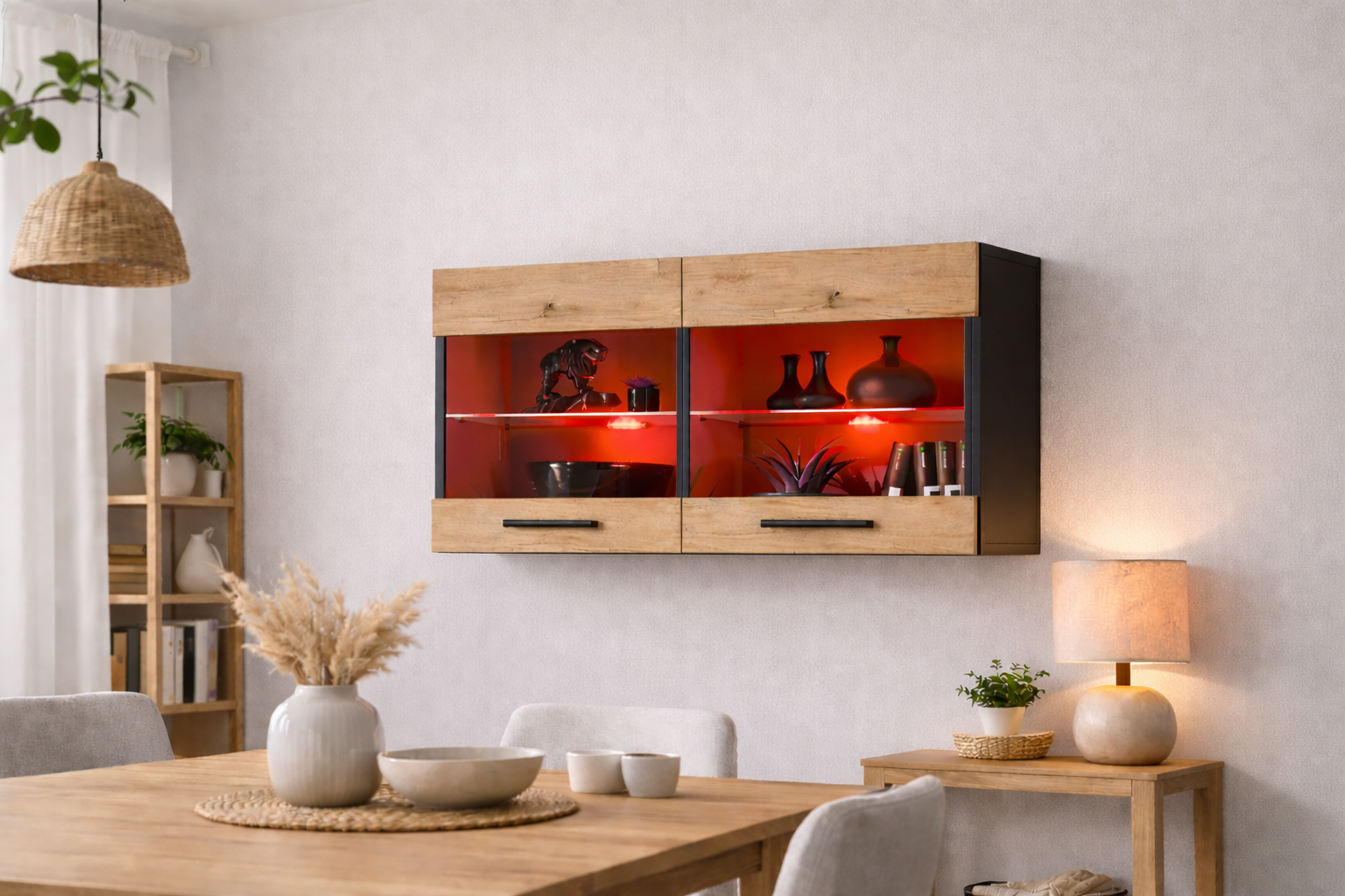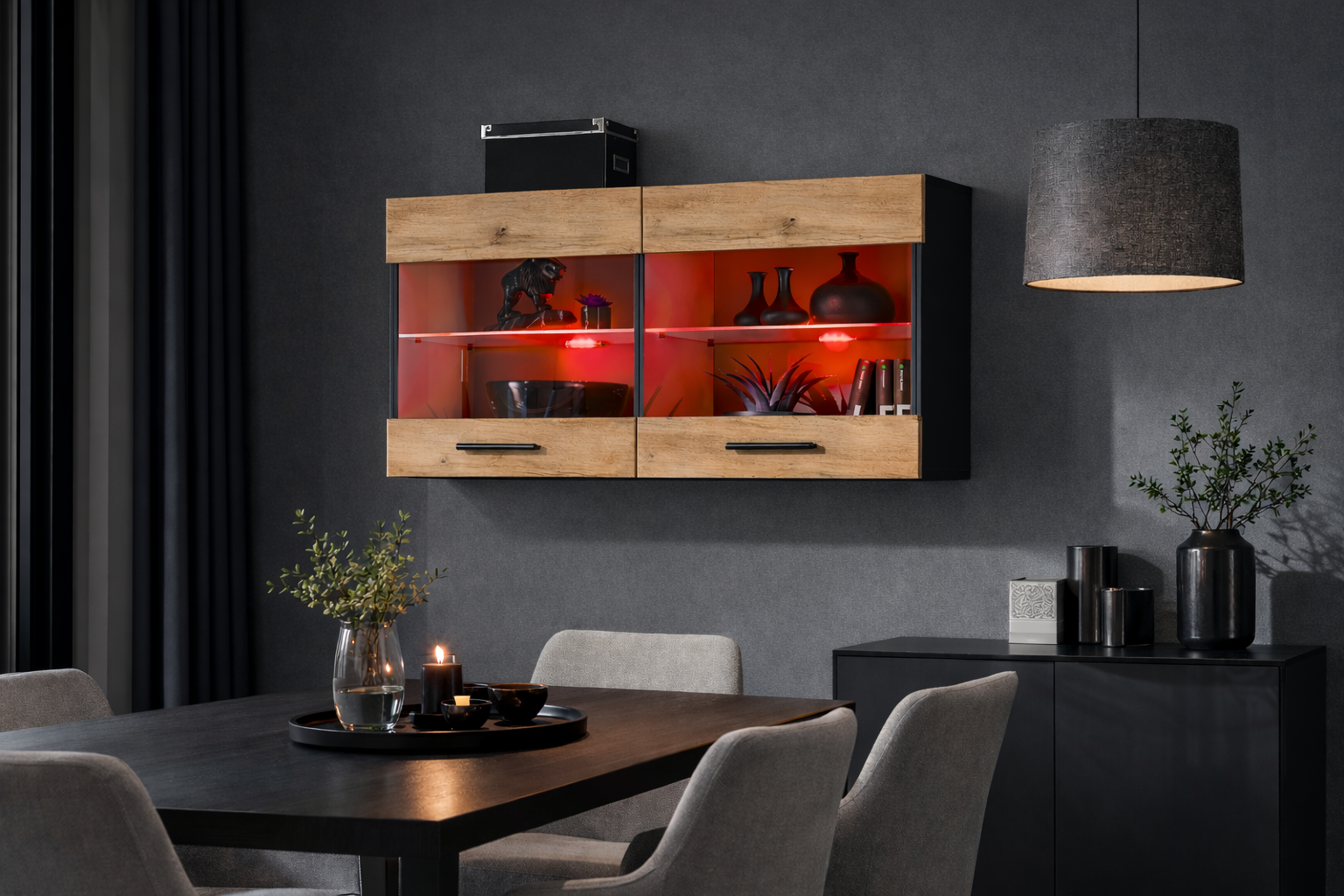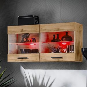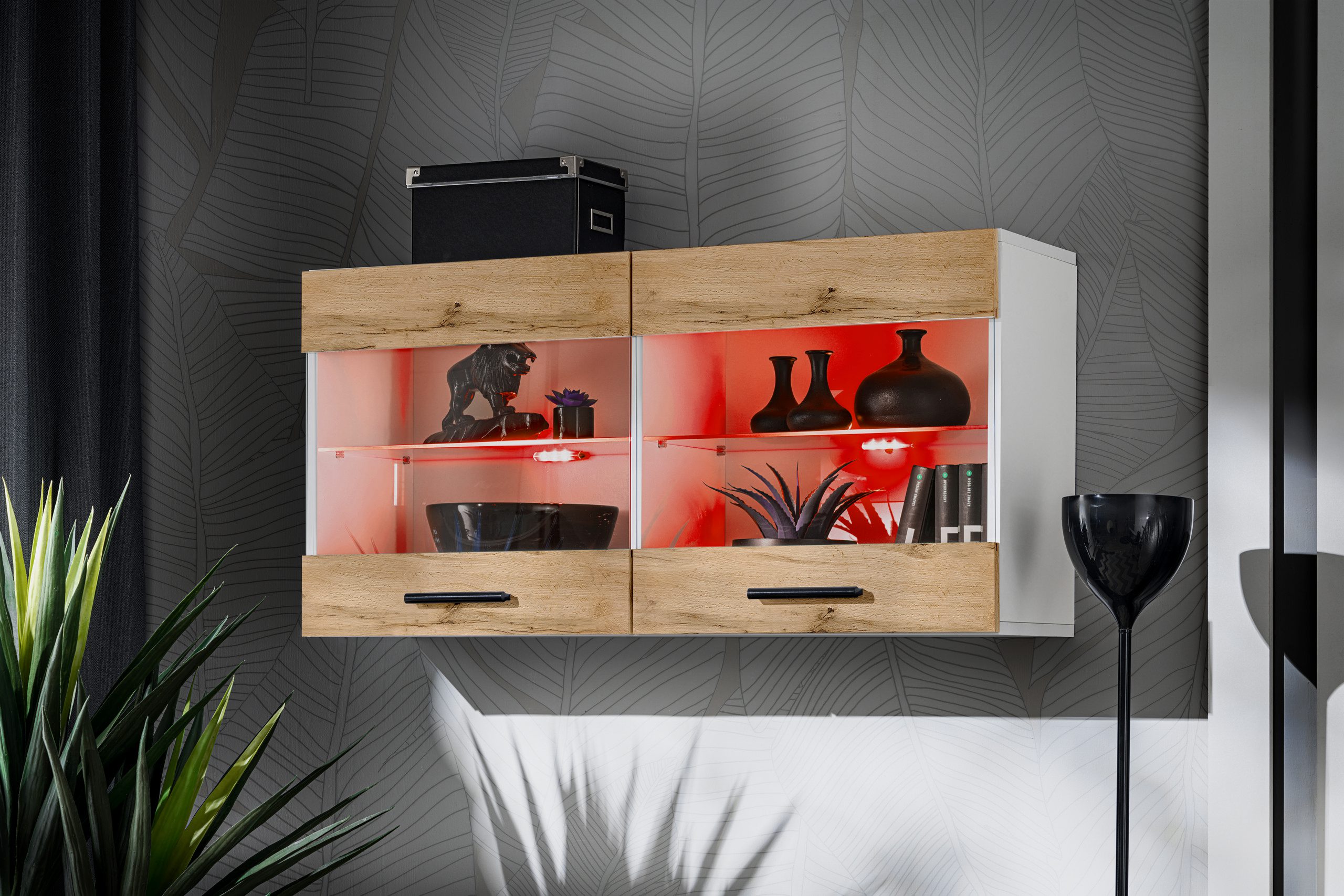 Witryna Półka Wisząca Savona, Wotan/Biały Oświetlenie LED RGB