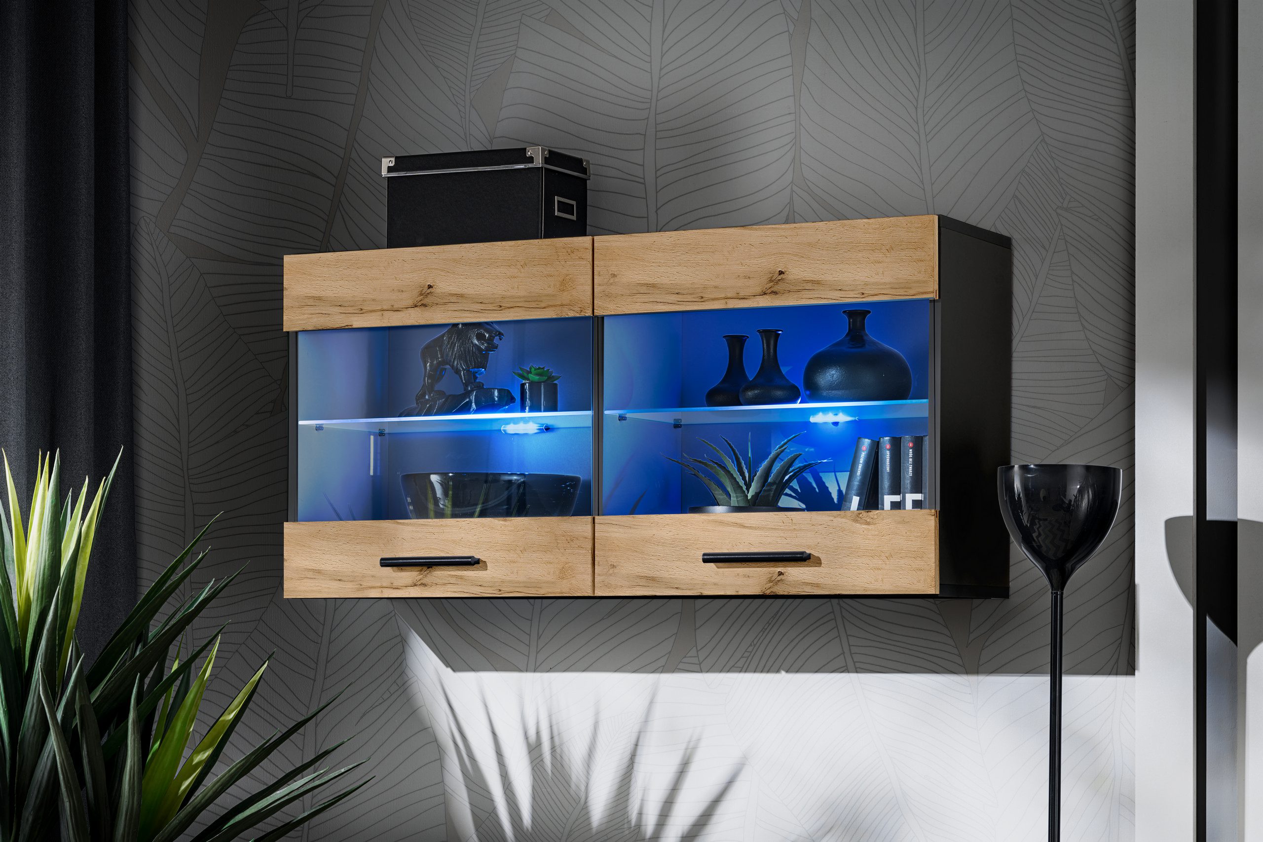 Witryna Półka Wisząca Savona, Wotan/Czarny