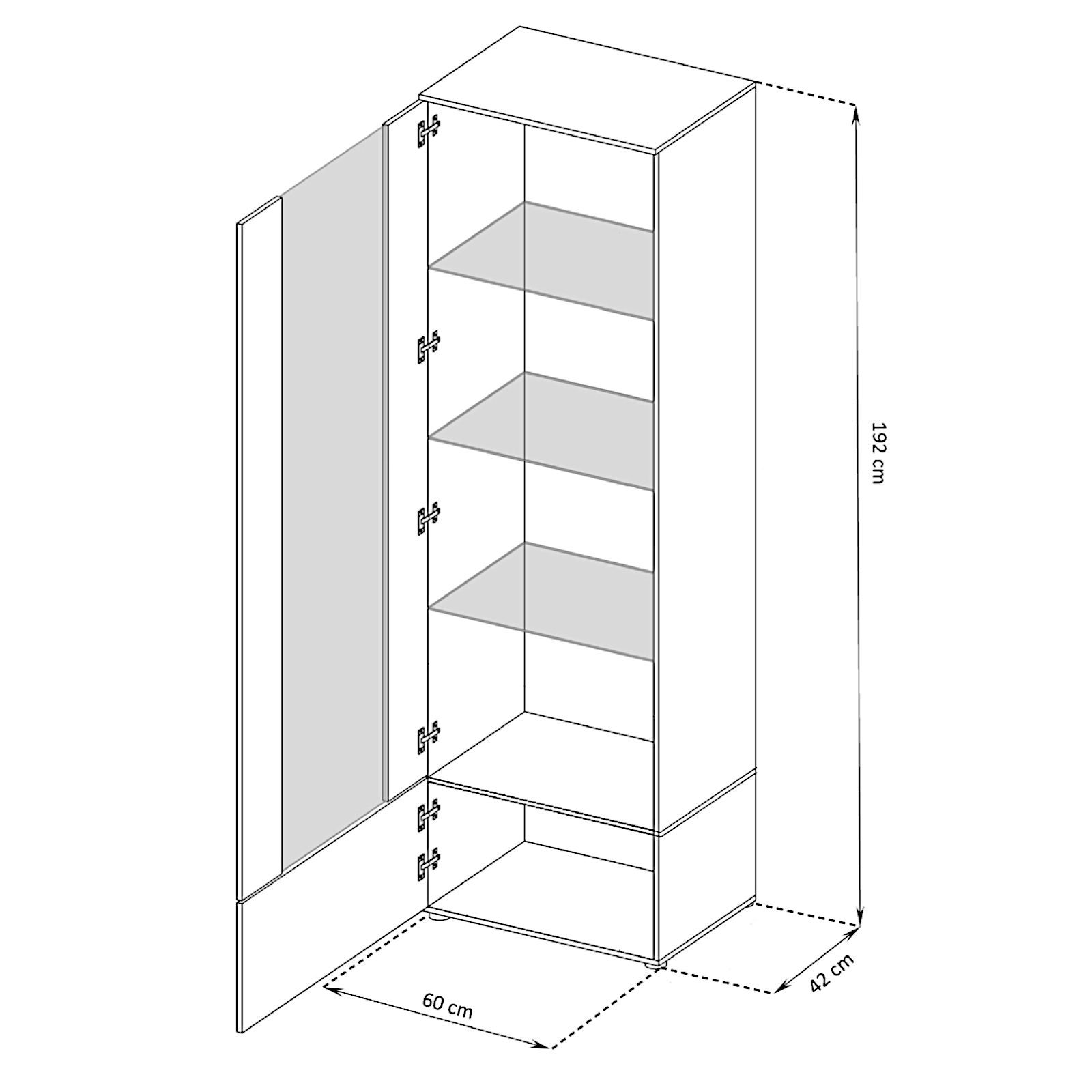Wymiary 42 × 60 × 192 cm