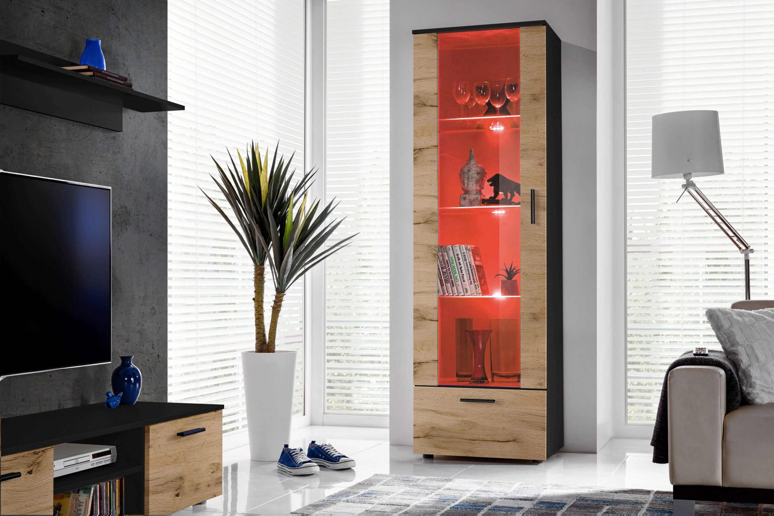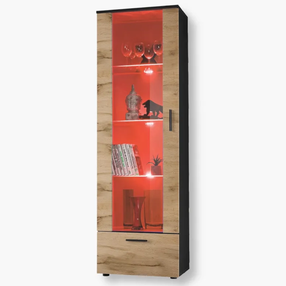 Witryna Stojąca Alessandria, Wotan/Czarny Oświetlenie LED RGB
