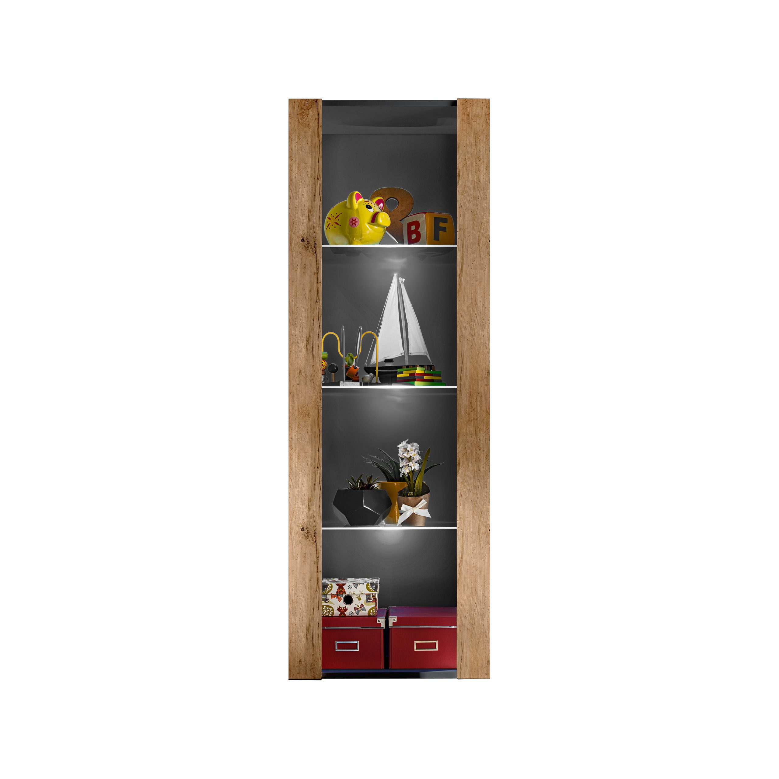 Witryna Tivoli to hołd, który składamy eleganckiemu, ponadczasowemu włoskiemu wzornictwu. W Tivoli znajdziesz miejsce na swoje ulubione książki, pamiątki lub filiżanki. Razem z dyskretnym oświetleniem LED (opcja) stworzy Twoim wnętrzu nowoczesną harmonię. Witryna oferuje otwarty dostęp i nie posiada drzwi.