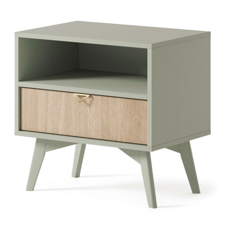Nocna Szafka TOFINO – Dąb – Zielony – Metalowe Uchwyty – Szuflada – Szerokość 54 cm, Wysokość 54 cm, Głębokość 38 cm