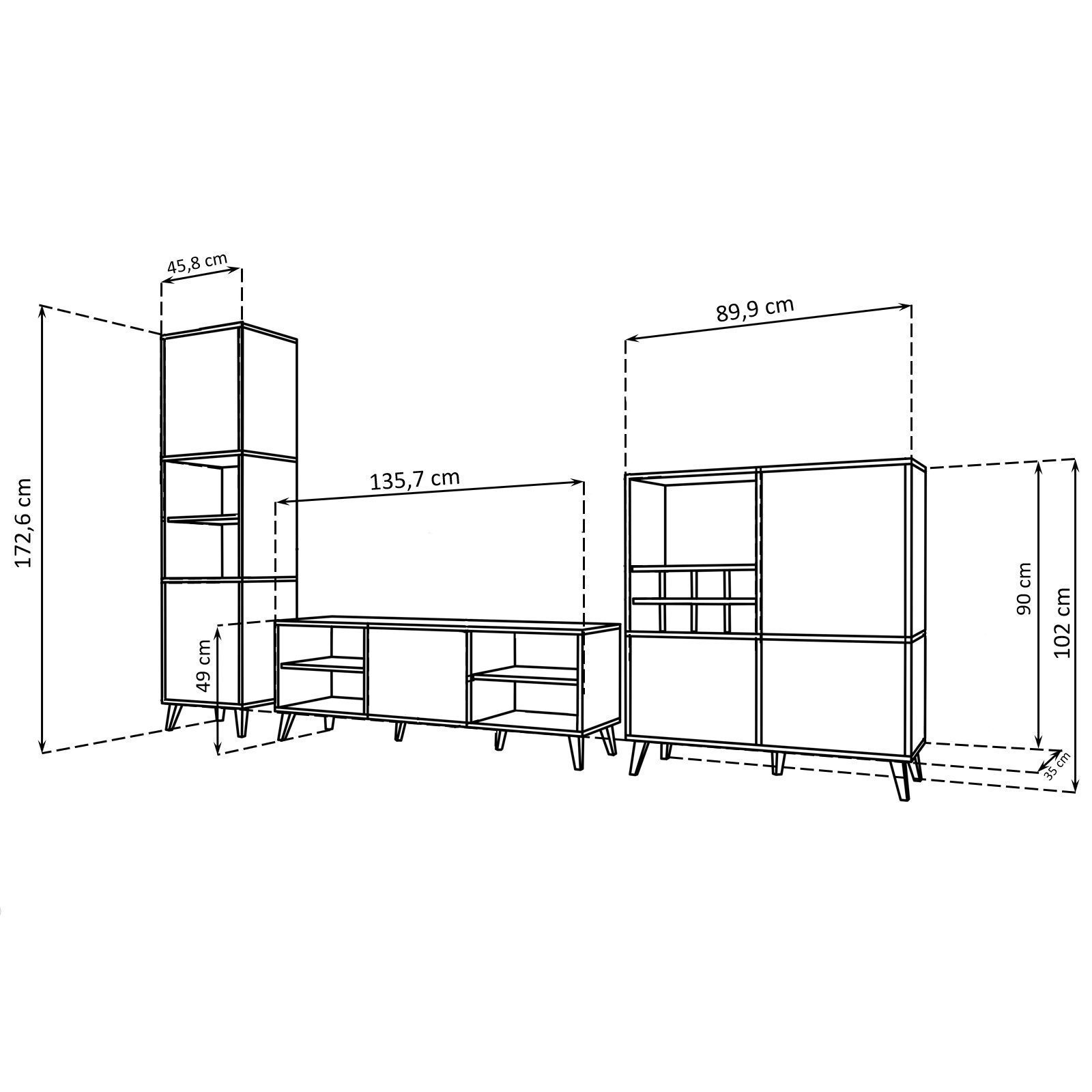 Zestaw Mebli RTV Tivoli Medio, Wotan/Biały