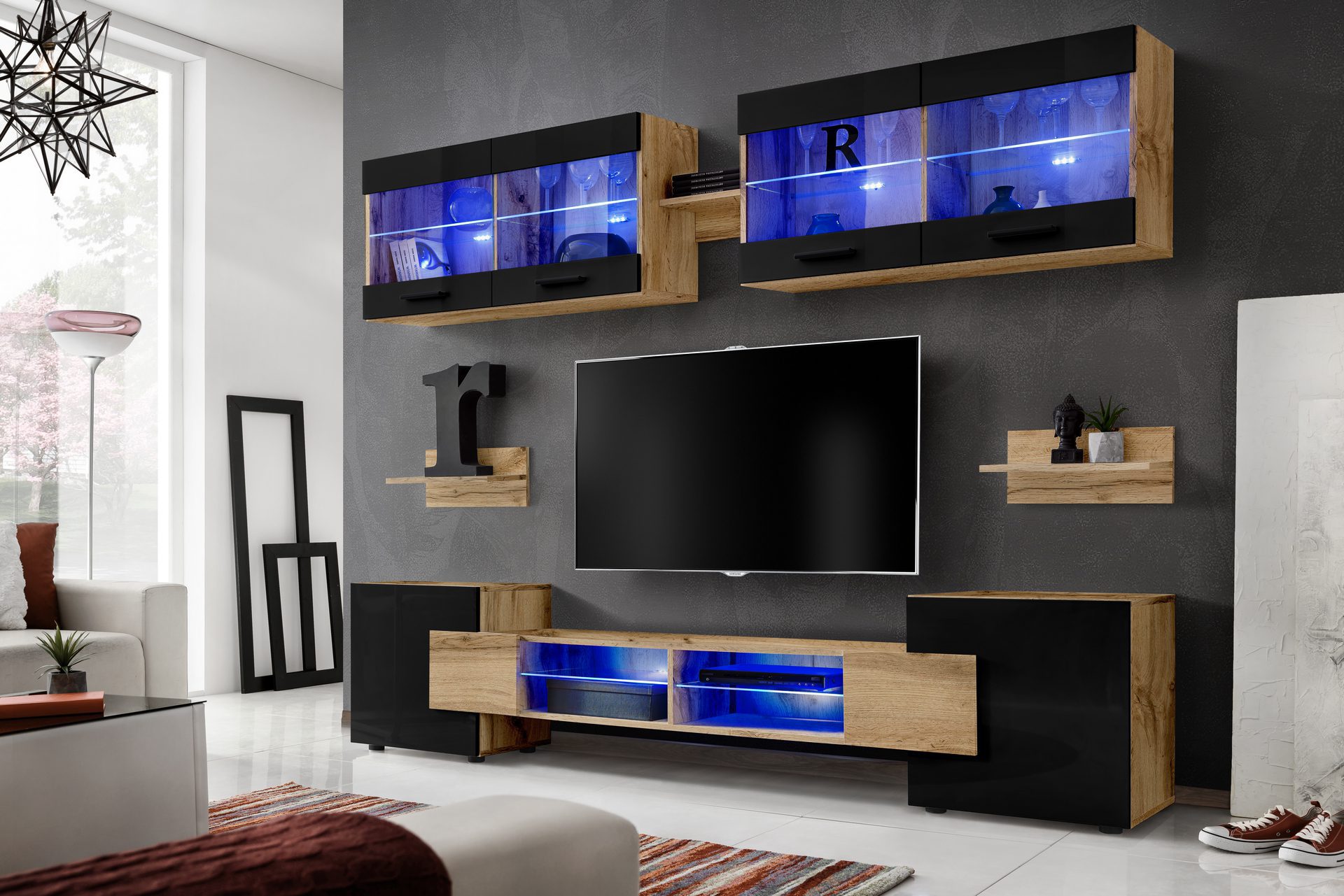 Zestaw Mebli RTV Foggia, Czarny/Wotan