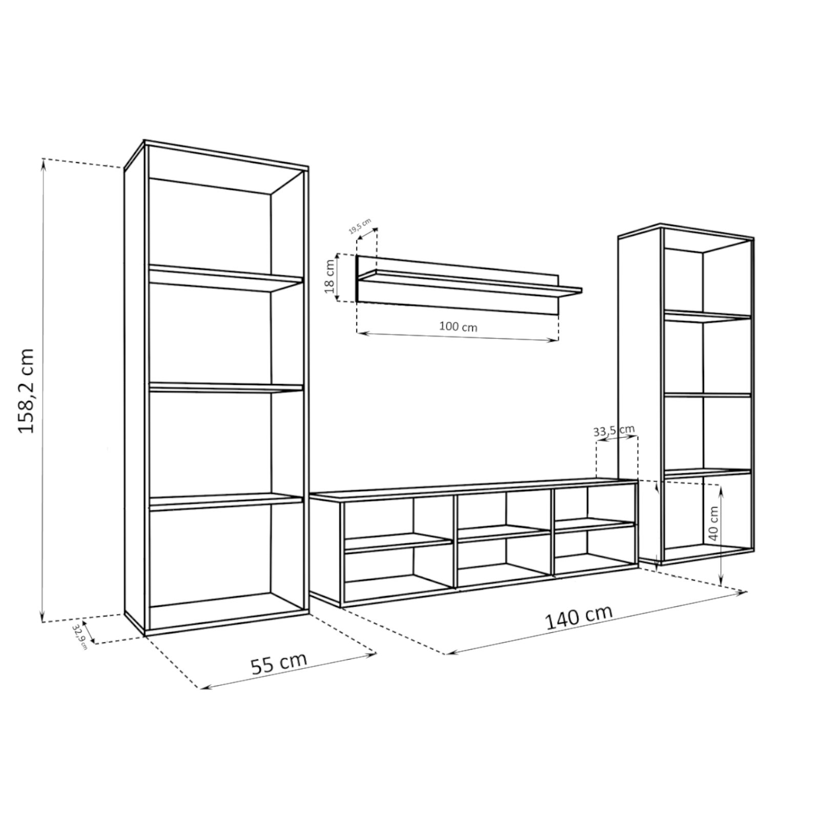 Zestaw Mebli RTV Tivoli Medio, Czarny/Wotan