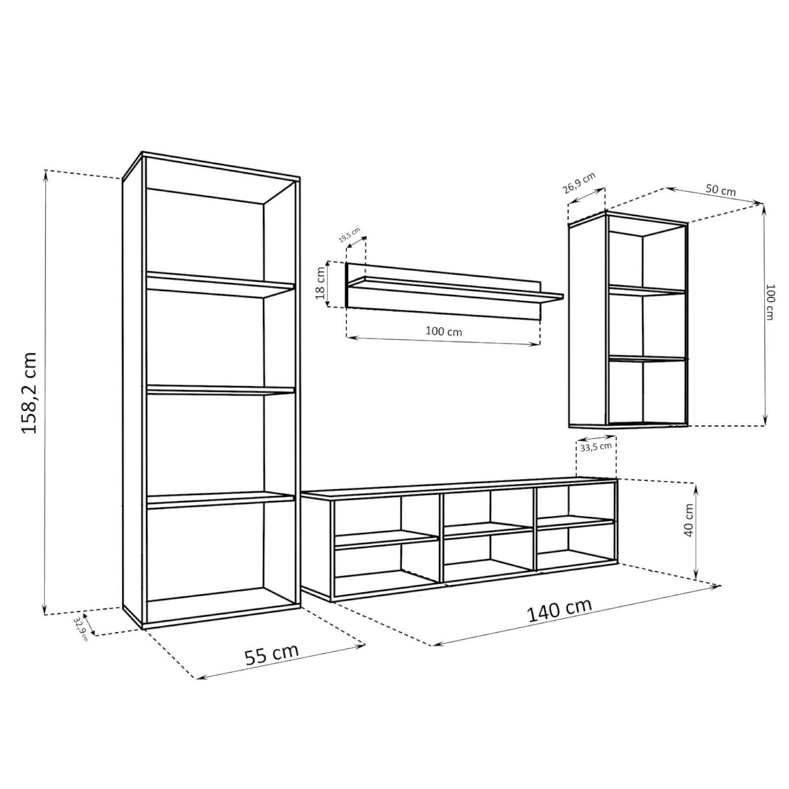 Zestaw mebli TV TARANTO MEDIO łączy prostotę designu z funkcjonalnością, oferując elegancką przestrzeń do przechowywania płyt winylowych, książek, porcelany, pamiątek, dokumentów oraz sprzętu audio i telewizyjnego. W skład zestawu wchodzą: 2 regały na książki, 1 półka oraz szafka RTV. Poszczególne elementy można dowolnie aranżować, dzięki czemu TARANTO MEDIO można dostosować do mieszkań o różnej wielkości.