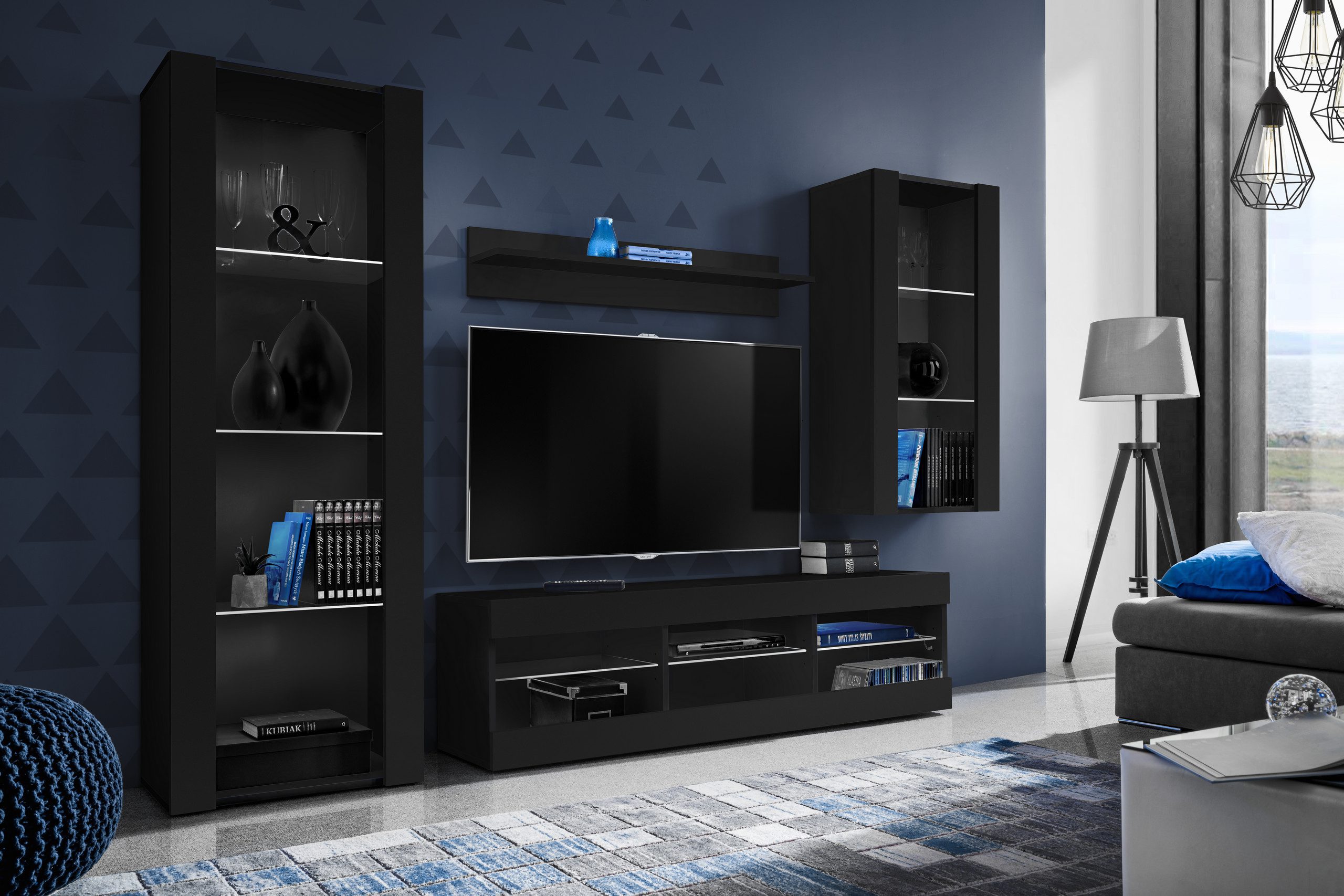 Zestaw Mebli RTV Tivoli Medio, Czarny/Czarny