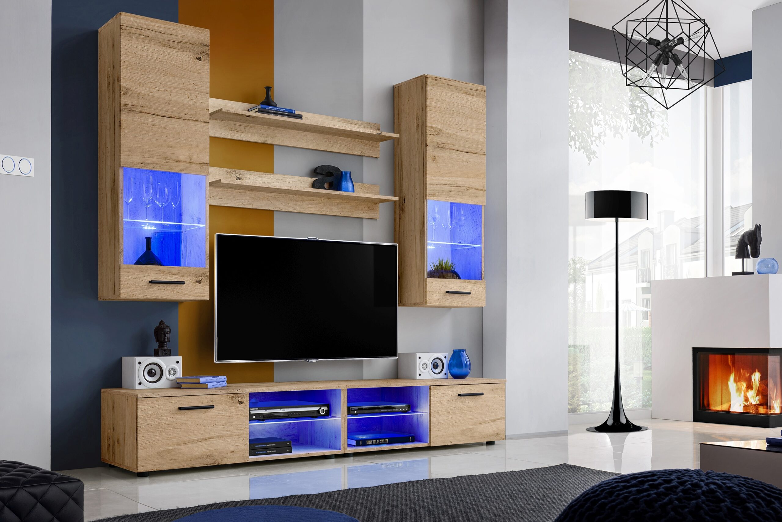 Zestaw Mebli RTV Varallo, Wotan/Wotan Oświetlenie LED Niebieskie