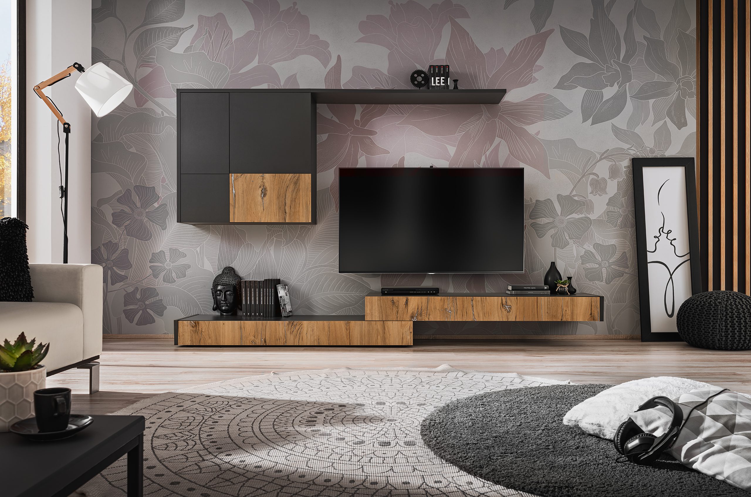 IMOLA est un mariage de deux couleurs : d’un anthracite très foncé, raffiné et élégant, et d’un chêne qui procure au mobilier un aspect chaud et sublime.