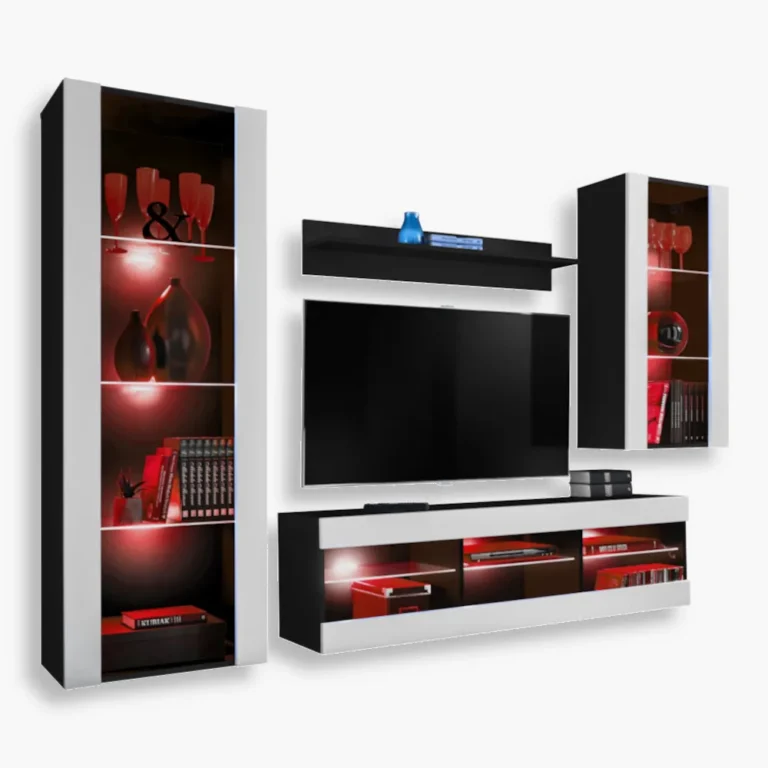 La vitrine et l'armoire RTV n'ont pas de portes.