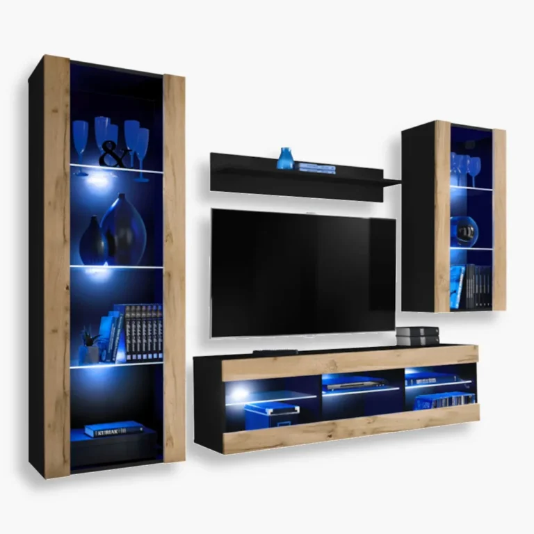 L’ensemble de meubles Forio (meuble TV + étagère) allie minimalisme moderne et fonctionnalité intemporelle. Il est idéal non seulement comme support pour votre téléviseur, équipement audio ou console de jeux, mais également comme espace de rangement pour vos livres, objets décoratifs ou souvenirs de famille. La disposition harmonieuse des éléments facilite l’organisation des câbles, appareils et objets favoris, tandis que le design léger et aéré souligne la cohérence visuelle de l’ensemble de la collection.