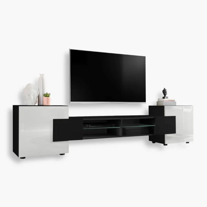Zestaw Mebli RTV Foggia, Biały/Czarny Oświetlenie LED RGB