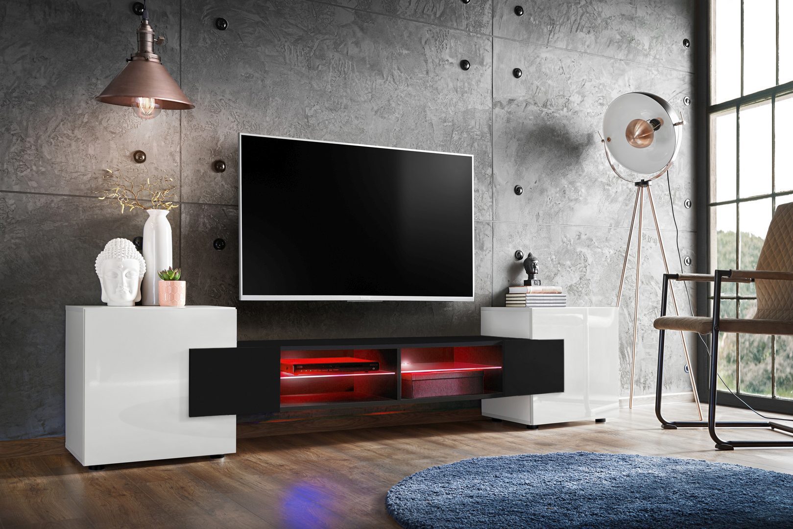 Merano TV Cabinet, White/Black RGB LED Lighting