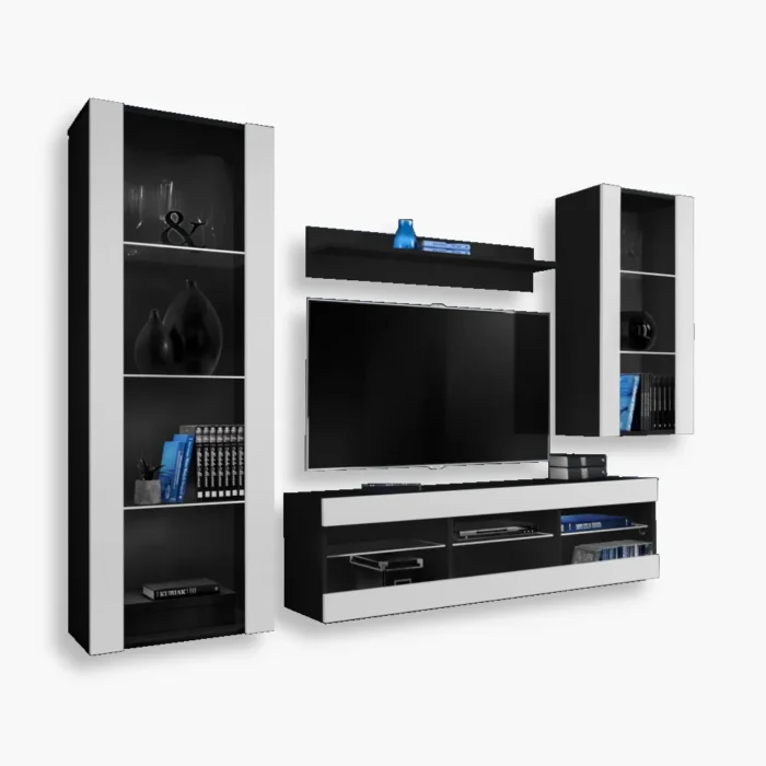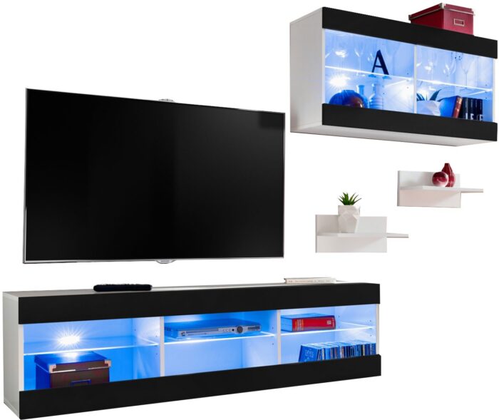 Zestaw Mebli RTV Foggia, Czarny/Biały