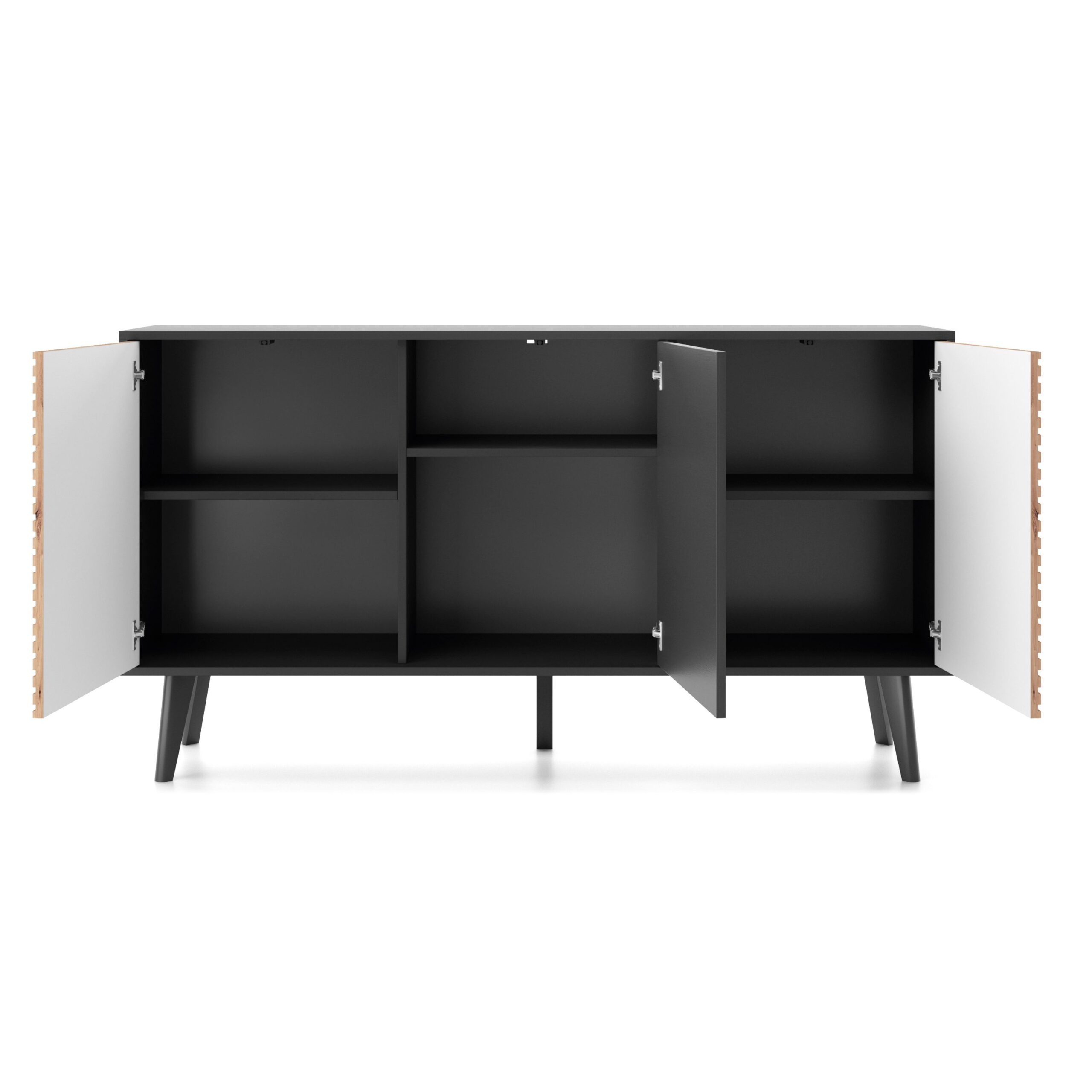 Saskatoon K154 – commode, noir, chêne artisanal, largeur 154 cm, hauteur 83 cm, profondeur 39 cm