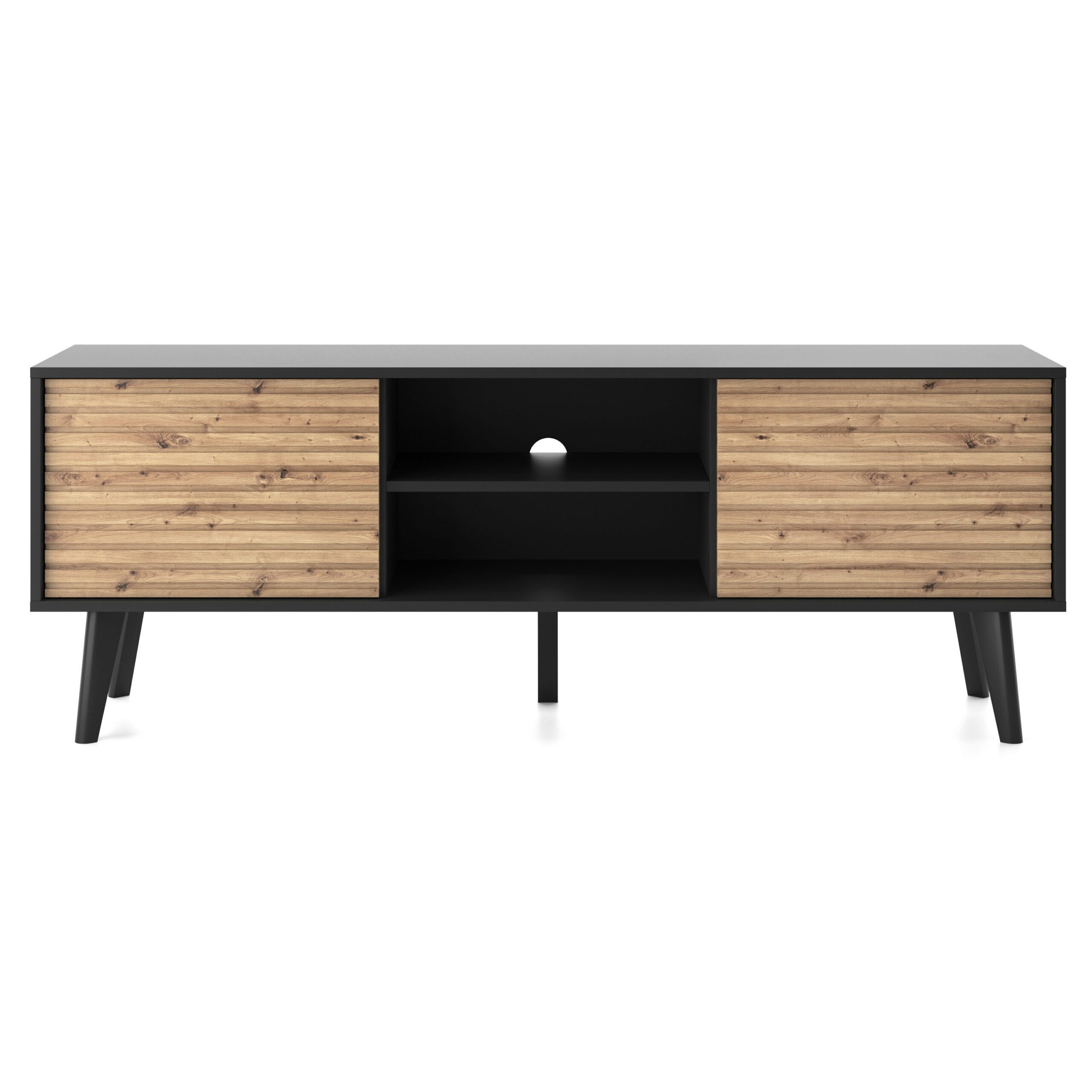 Saskatoon RTV154 – szafka RTV, czarny, dąb artisan, szerokość 154 cm, wysokość 56 cm, głębokość 39 cm