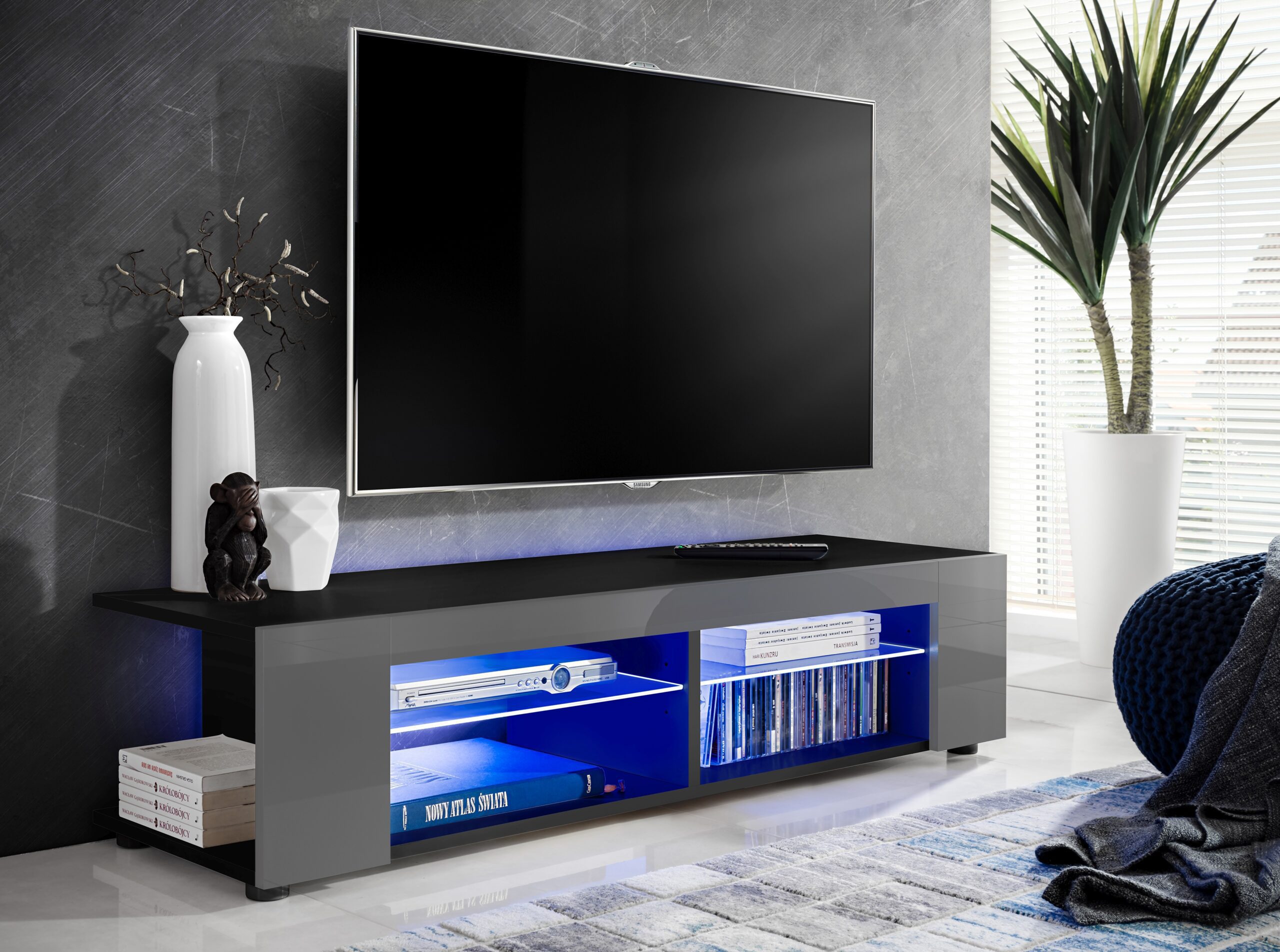 Fronty mebla dostępne są w dziesięciu atrakcyjnych kolorach, w połysku bądź imitującym drewno macie. Dzięki modnemu opcjonalnemu oświetleniu LED prezentowana szafka będzie centralnym meblem w Twoim mieszkaniu. Ponadto, jeśli szukasz recepty na opanowanie elektronicznego chaosu, będzie ona strzałem w dziesiątkę. Możesz mieć pewność, że błyskawicznie stanie się również ulubionym kompanem w Twoim salonie.