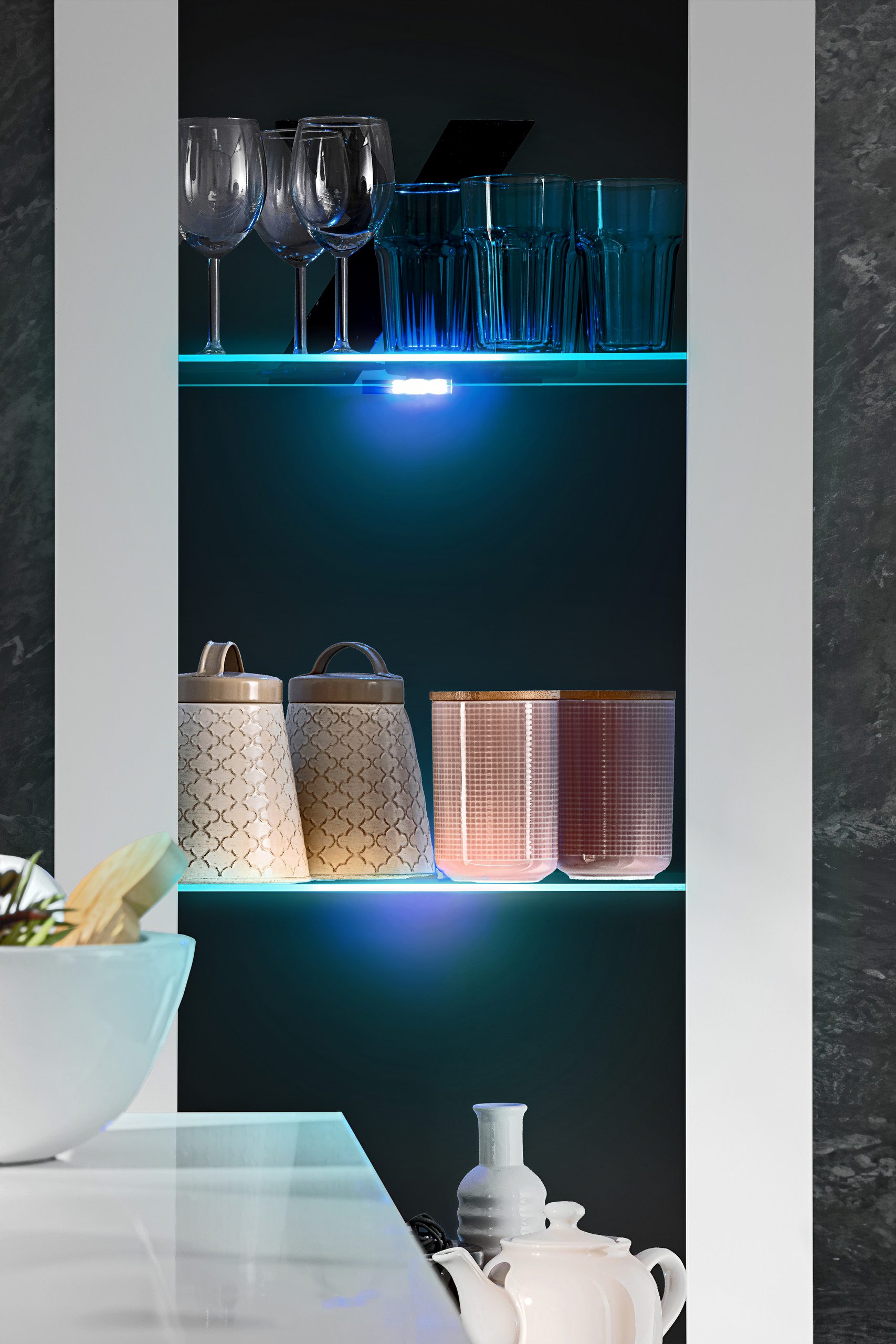 ulubione książki, pamiątki lub filiżanki. Razem z dyskretnym oświetleniem LED